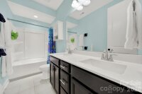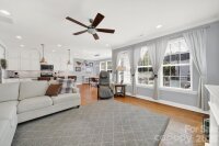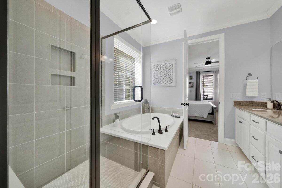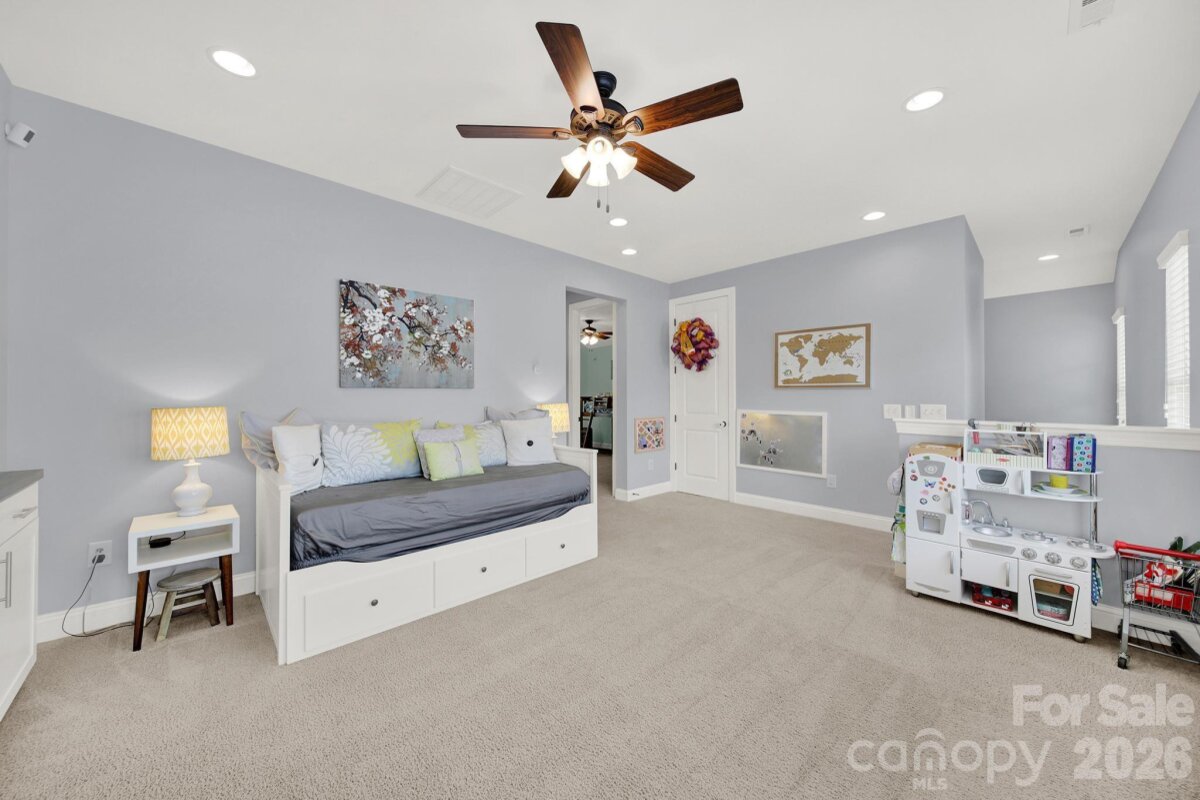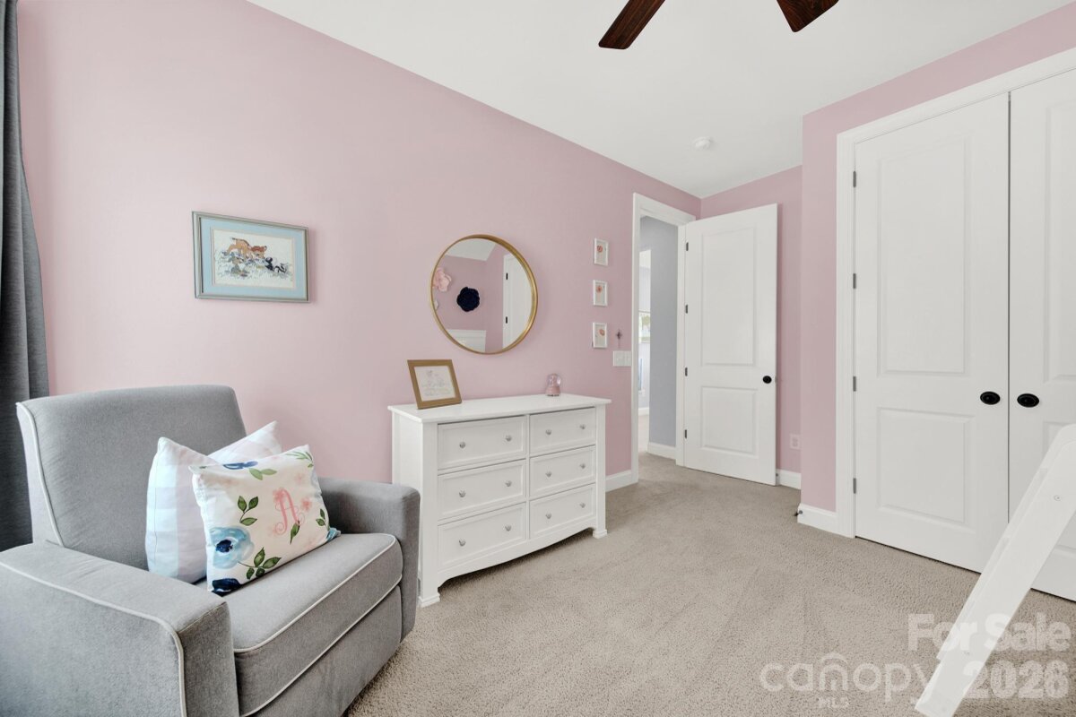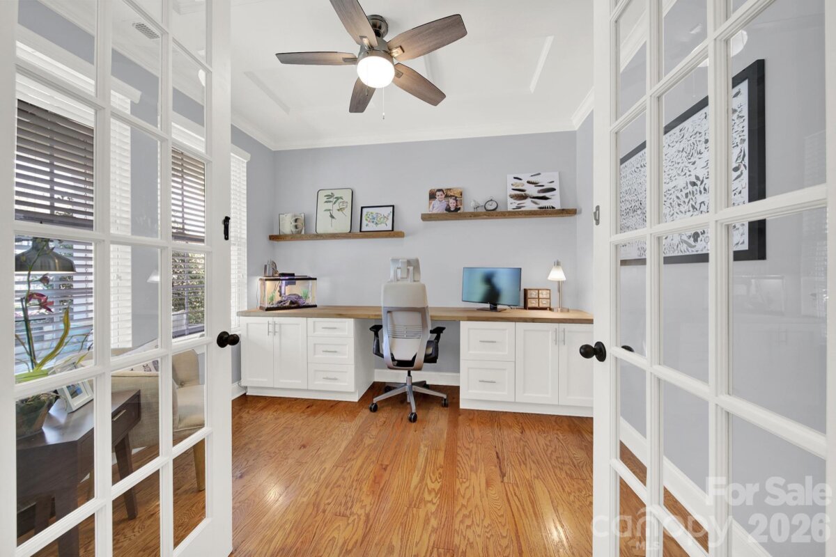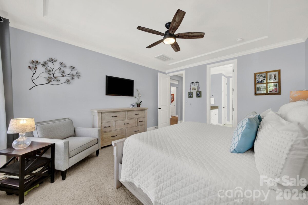 This stunning open-concept home is drenched in natural light and boasts a professionally landscaped yard with irrigation, extensive paver patio, and fully fenced yard, complete with an oversized Charleston-style covered front porch—perfect for relaxing evenings or morning coffee. The kitchen is a chef’s dream, featuring an oversized island with ample seating, stacked cabinets, gas range, stainless steel appliances, and an open dining area that flows seamlessly to the patio for effortless indoor-outdoor living and entertaining. The main level is highlighted with beautiful pre-engineer hardwood floors, a private office with French doors, and a spacious living room ideal for family gatherings. The primary suite on the main floor offers a spa-like bathroom, with a walk-in closet, creating a private retreat. Laundry room is conveniently located on the main level with extra storage closet. Upstairs, you’ll find a versatile loft, two additional bedrooms, a full bath, and a large walk-in storage closet completing the second level. Enjoy a vibrant community lifestyle with amenities including a clubhouse, pool, two playgrounds, walking trails, two scenic ponds, and nearby walkable dining options. All of this is located within the award-winning Fort Mill School District. This home combines modern comfort, thoughtful design, and an ideal location. Welcome home!