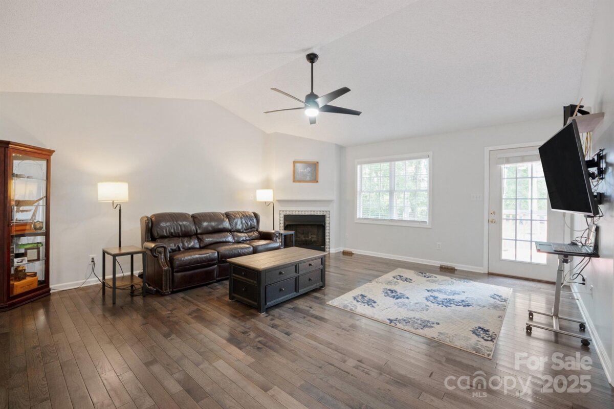 Welcome to this beautifully maintained 1-level home with gorgeous modern updates, and a peaceful country feel-all just 5–10 minutes from retail, grocery stores, and dining. Built in 2006 and offering approximately 1,588 square feet of living space on a spacious 0.47-acre lot, this 3-bedroom, 2-bathroom home is truly move-in ready and loaded with features. Enjoy the charm of a brick and vinyl exterior with mature trees around, offering a woodsy, serene atmosphere. The home has a new roof (2024), new garage door and opener (2024), new gutter guards (2025), and fresh paint throughout the entire interior and garage, making it feel like new. Step inside to find pre-finished hardwood flooring throughout the living areas & bedrooms, vinyl plank flooring in both bathrooms, & ceramic tile in the laundry closet. The spacious living room features a gas log fireplace (sellers do not use, no propane tank on site) & a remote-controlled ceiling fan with light, adding convenience. All 3 BRs are generously sized & include ceiling fans with lights, and the owner's suite offers a walk-in closet and a private bath with double sink vanity, tub/shower combo & linen closet. The home has lots of closets and storage space thruout. The kitchen is fully equipped with appliances included—refrigerator, range, microwave, and dishwasher—making this a truly turnkey property. Relax on the covered front porch or enjoy evenings on the freshly painted back patio overlooking a huge fenced backyard complete w/a fire pit area, perfect for entertaining or enjoying the peaceful surroundings. This property offers the best of both worlds — a quiet, natural setting with the convenience of nearby amenities. With thoughtful updates and quality features throughout, this home is perfect for buyers looking for comfort, space, and value. NO city taxes!
