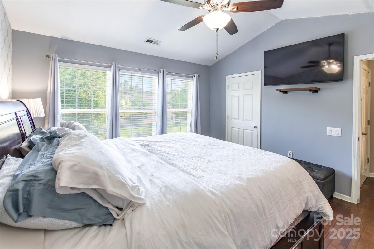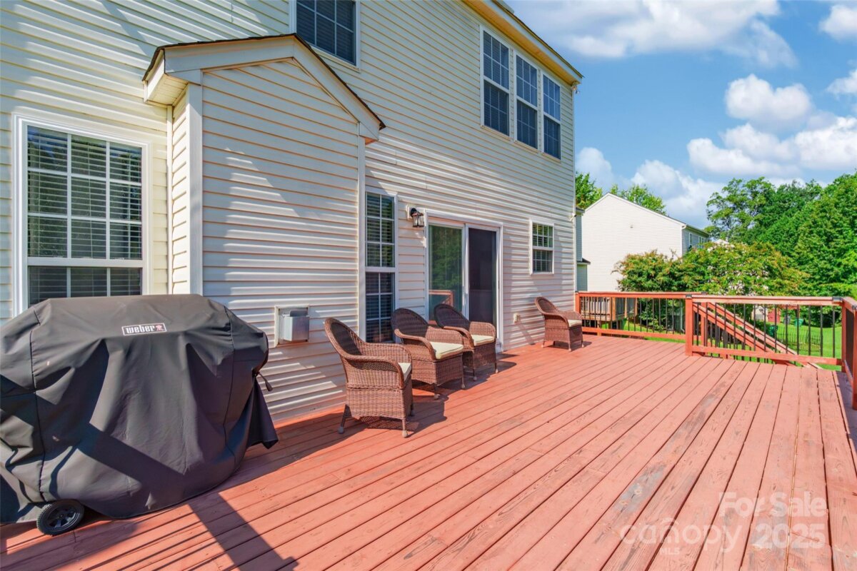 Discover this charming two-story home in the desirable Mulberry Pond subdivision of Charlotte, NC. This well-maintained home offers a comfortable and functional layout perfect for modern living! Throughout, you'll find carefully appointed upgrades! The main level boasts a flowing floor plan, ideal for entertaining and everyday life. A highlight of the home is the spacious kitchen and oversized island, providing a curated space to enjoy! Upstairs, you'll find the private bedrooms, including a comfortable primary suite with vaulted ceilings. Outside, this home features an oversized deck that overlooks a tranquil pond, creating a perfect spot for relaxation or outdoor gatherings. The property also includes a finished garage, creating more entertaining space for your guests!