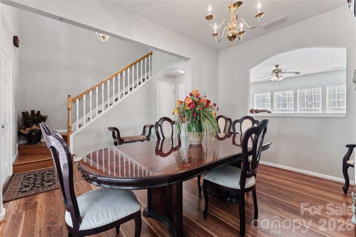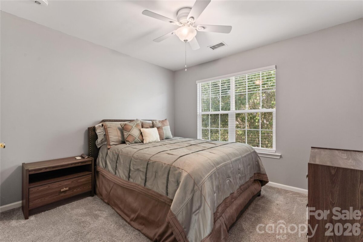 From the moment you step into the soaring two-story foyer, you'll feel it, this one is different. The great room draws you in with a gas log fireplace and beautiful natural light, while the kitchen keeps things functional and stylish with granite countertops and a gas range. Out back, your patio overlooks a tree-lined yard that feels like your own little retreat. Upstairs, four bedrooms and two full baths give every member of the household their own space, anchored by a primary suite with vaulted ceilings and a dual vanity that makes mornings feel a little more luxurious. Laundry is conveniently located on the same floor. Attached two-car garage, excellent storage, and impeccably maintained throughout. All of this in Newell Crossing — minutes from UNC Charlotte, TopGolf, IKEA, and a straight shot to Uptown. Move-in ready and priced to move!