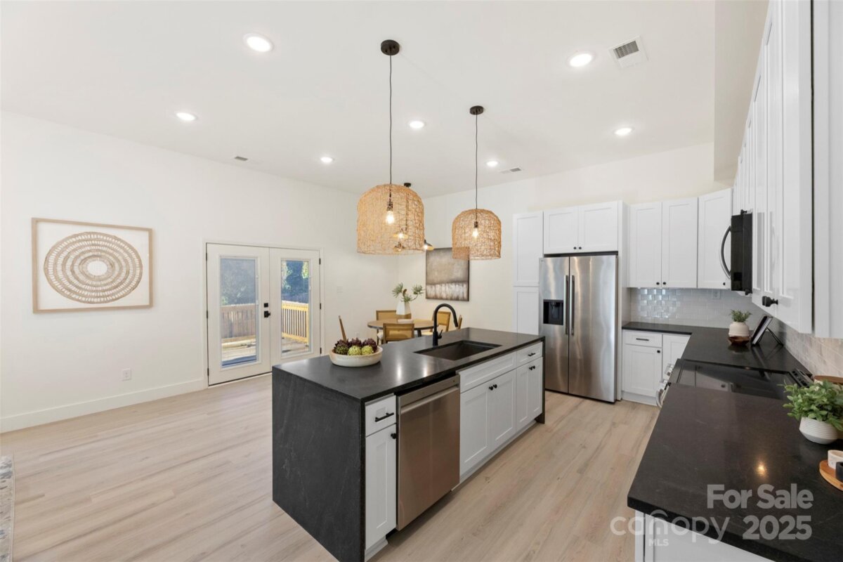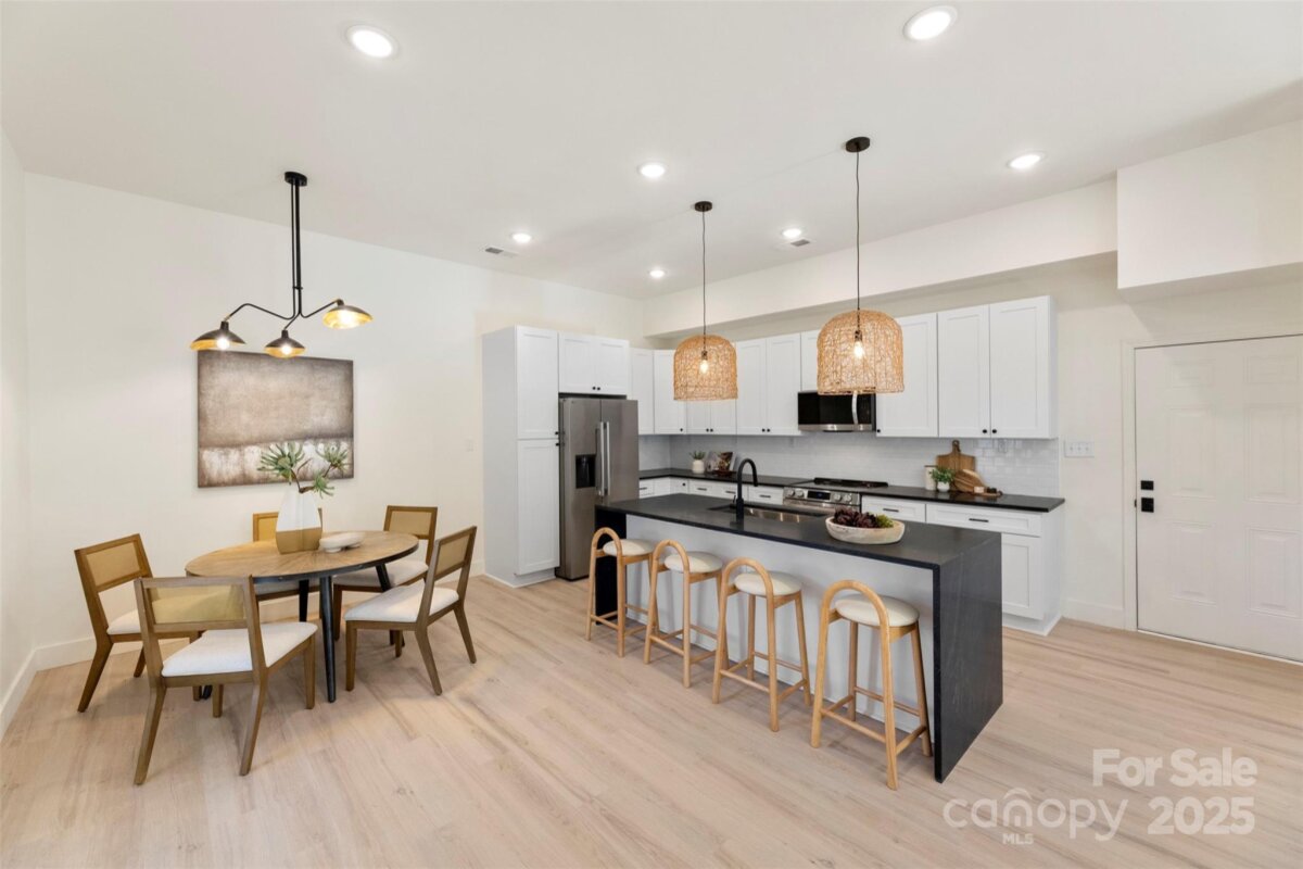 Welcome to this gorgeous modern home - just minutes to Uptown! This new construction 4 bed / 3 bath home features open living spaces, tons of natural light, and a floor plan that is perfect for everyday life. The oversized kitchen island is perfect for entertaining. Enjoy a true dining area, cozy living room with fireplace and a bedroom and full bath on the main level - perfect for guests or an office space. Upstairs you will find a spacious primary suite, two additional bedrooms, a laundry room and rooftop patio. It also boasts a spacious two car garage and fenced in backyard for added privacy. This house is move-in ready, beautifully finished, and close to everything Charlotte has to offer. Don't miss your opportunity to make this home yours!