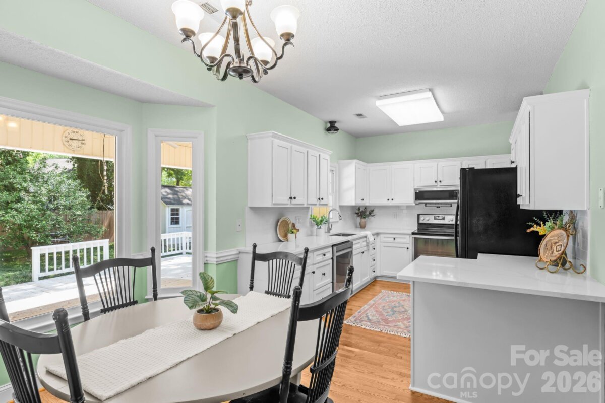 Welcome to your new home, nestled in the peaceful and sought-after community of The Heathers in Matthews, NC. This charming, well-maintained residence offers the perfect blend of suburban tranquility and modern convenience. Step inside to find a thoughtfully designed floor plan that prioritizes both comfort and functionality. The main level features gleaming wood floors and a bright, airy aesthetic. The heart of the home boasts crisp white cabinetry, sleek quartz countertops, and stainless steel appliances. A convenient breakfast nook overlooks the lush backyard through a large bay window. Enjoy cozy evenings by the fireplace in the family room or host formal dinners in the dedicated dining area. The Primary Suite offers a peaceful retreat featuring a walk-in closet and an ensuite bath with dual vanities. With four bedrooms, there is ample space for a home office, gym, or guest suite. Located on a quiet cul-de-sac, the property offers a private, fenced-in backyard—perfect for pets, gardening, or summer BBQs. Attached 2-car garage with additional shop space for DIY projects. You are just minutes away from the vibrant shops and restaurants of Downtown Matthews, with easy access to I-485 for a quick commute to Charlotte. Zoned for highly-regarded schools, including David W. Butler High (just 0.5 miles away), Mint Hill Elementary, and Mint Hill Middle. This home is a rare find in a community with no HOA, providing you the freedom to truly make the space your own.