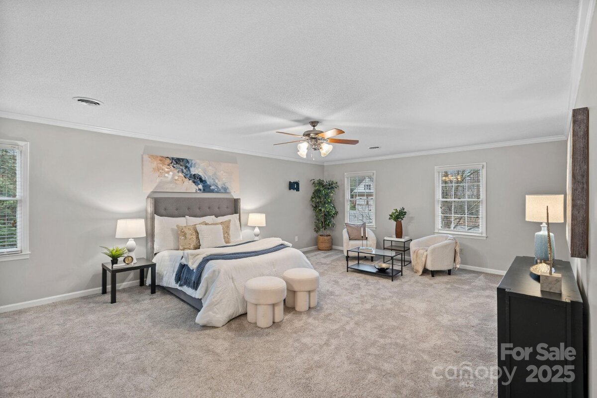 Nestled on a quiet cul-de-sac street, this beautifully updated full brick 4 bedroom, 3 bathroom home offers space, style and privacy on nearly a half acre. With its peaceful setting and low-traffic location, this property is a true retreat while still being close to everyday conveniences. Step inside to discover an interior that feels brand new, featuring fresh, neutral paint throughout and a thoughtfully designed floor plan with over 3200 heated sq. ft. The updated kitchen shines as the heart of the home, boasting granite countertops, stainless steel appliances and a tile backsplash, blending modern elegance with timeless durability. The main level includes a flexible bedroom that could serve as a home office or a second primary suite, offering incredible versatility for guests, multi-generational living, or work- from- home needs. The spacious living room is warm and welcoming, anchored by a gas fireplace with a brick surround, adding charm and a timeless focal point. All bathrooms have been thoughtfully updated, offering modern comfort and design. Upstairs, you'll appreciate the new carpet, adding beauty and comfort throughout the second level. The expansive primary bedroom suite is truly oversized, providing a private oasis with ample space for relaxation. The suite continues to impress with a walk-in closet featuring custom built-ins. A standout feature of the home is the private bonus room, complete with a separate staircase, making it the perfect space for a media room, playroom, home gym or creative studio. Step outside to the oversized Trex deck, where you can relax and enjoy serene views of the newly tree-lined backyard, offering natural beauty and privacy with plenty of room for outdoor activities. The expansive lot offers endless potential for gardening or custom outdoor living enhancements. A rare opportunity combining updates, generous living space, and an exceptional lot in a prime setting. This home truly has it all. Living here you are just 10 minutes from everything that downtown Rock Hill has to offer!