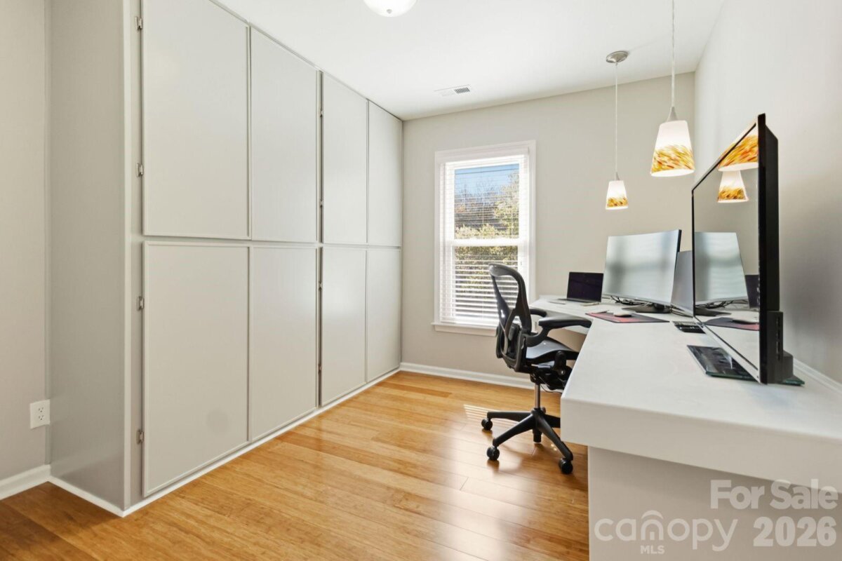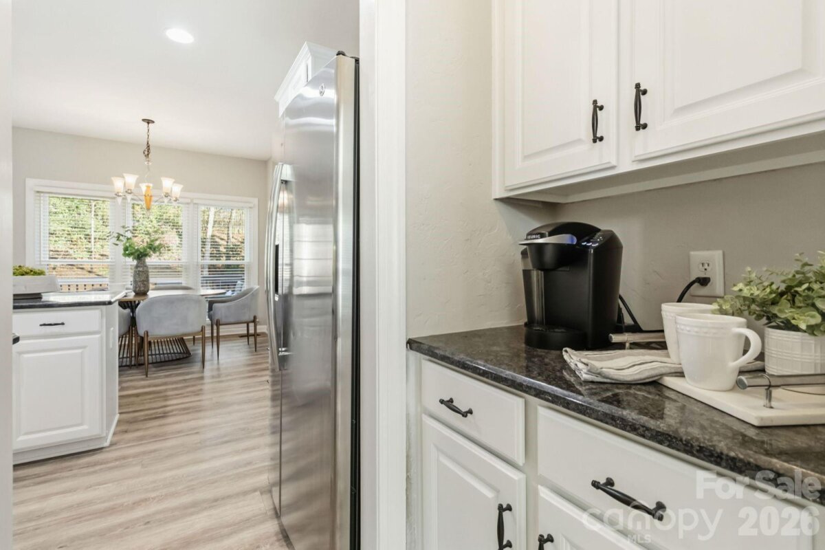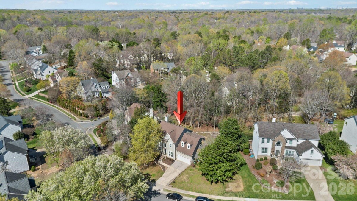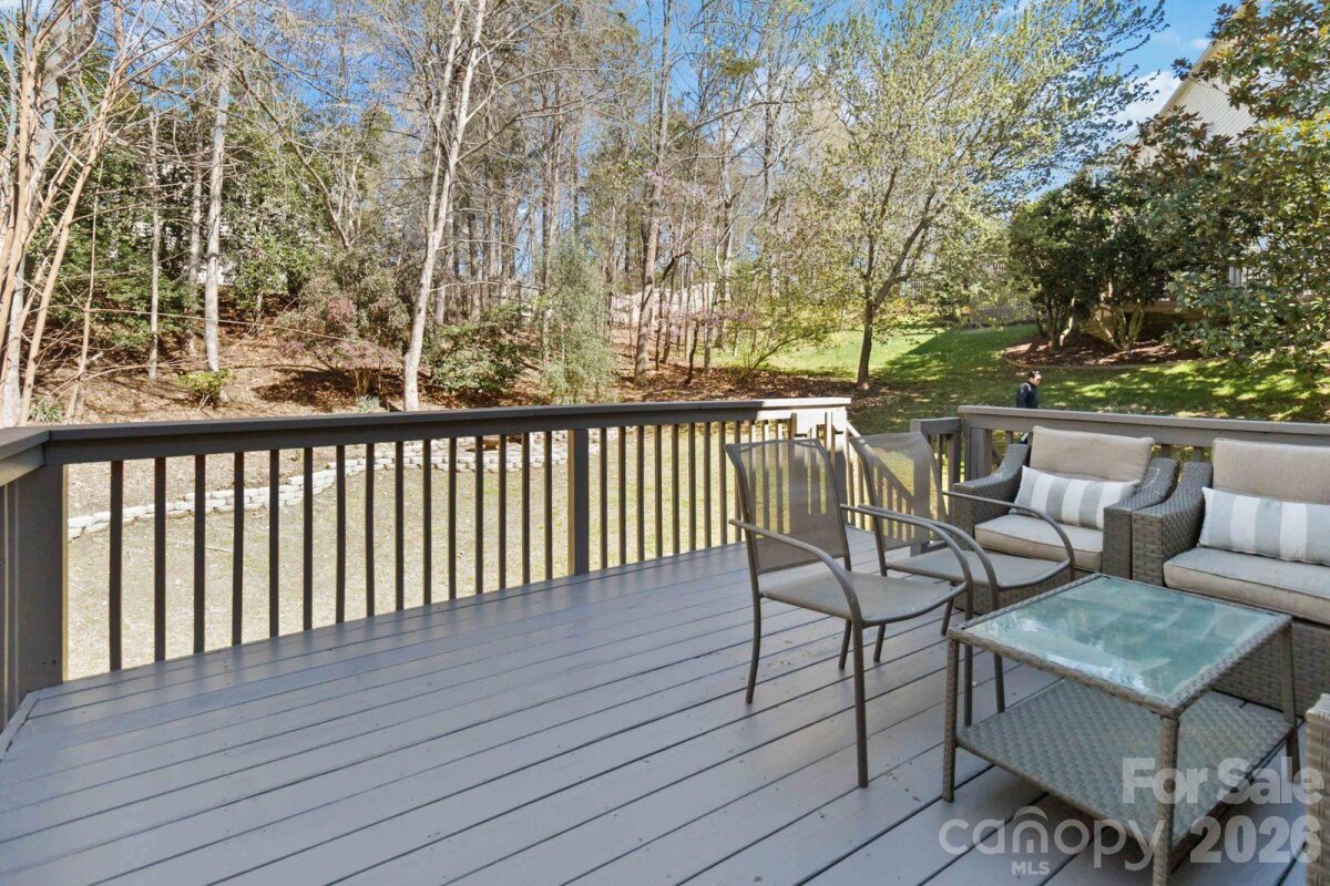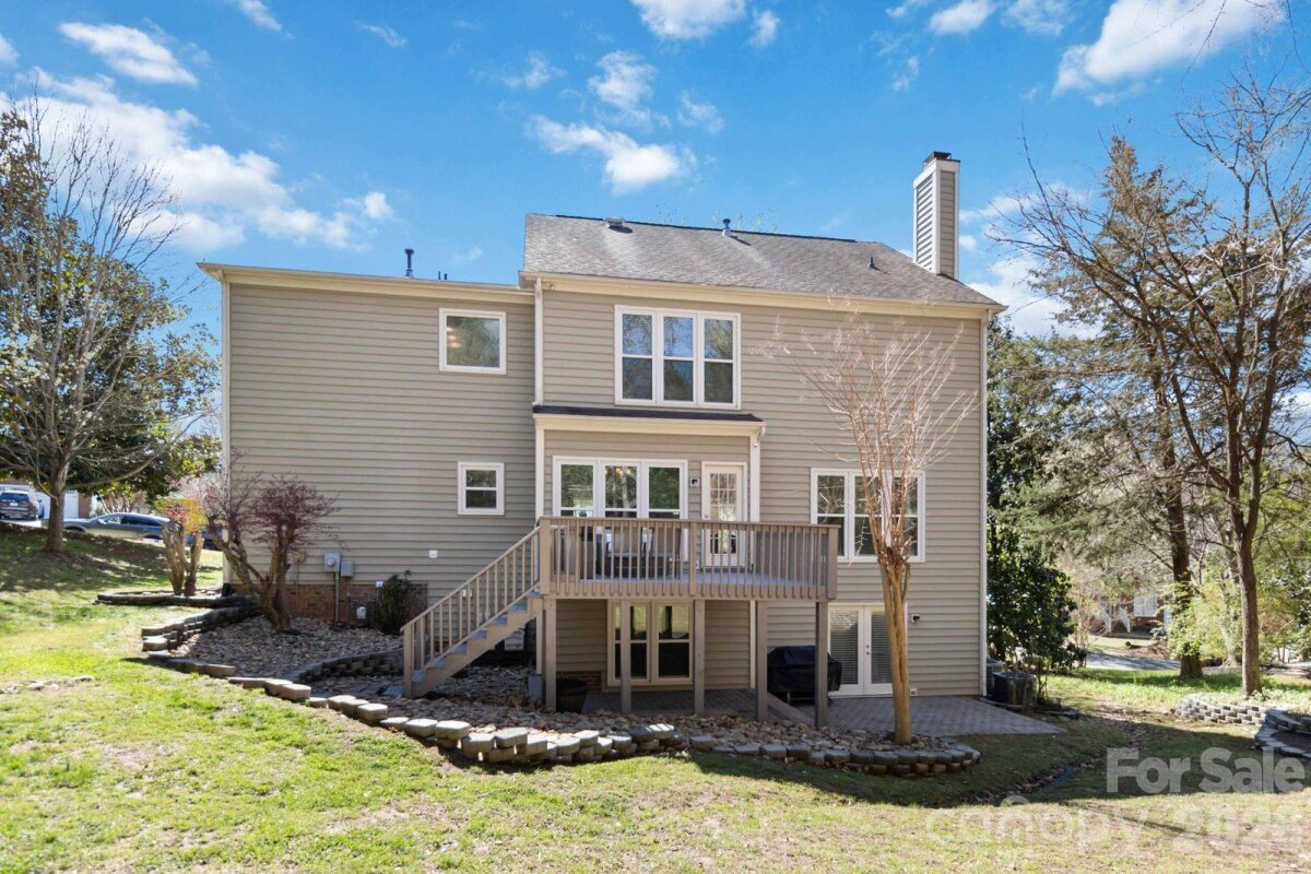 Stunning full-brick 2-story home with a fully finished basement, offering an exceptional blend of elegance, comfort, and functionality. This open-concept floor plan features a formal living room and dining room, seamlessly flowing into a beautifully updated kitchen designed for both everyday living and entertaining. The kitchen boasts granite countertops, abundant cabinet and prep space, new stainless steel appliances, and a butler’s pantry, all overlooking a spacious family room and bright breakfast area. A convenient main-level laundry room adds to the home’s thoughtful layout. Upstairs, the expansive primary suite offers a private retreat an oversized walk-in closet, and a luxurious bath featuring ceramic tile flooring, dual granite vanities with sitting area, a walk-in shower, and a relaxing whirlpool tub. Three additional bedrooms, a dedicated office, and attic storage provide ample space for family and guests. The fully finished basement is ideal for entertaining, featuring a large open recreation area perfect for a pool table or multi-use space, an impressive bar with glass cabinetry, sink, and mini fridge with icemaker, plus a separate fitness/rec room and full bath. Outdoor living shines with a large deck and paver patio overlooking a private backyard, where you may enjoy occasional visits from local wildlife. Additional highlights include an oversized 2-car garage with extensive built-in storage. Recent updates include appliances, water heater, and HVAC. Ideally located with easy access to the new I-485 exit, YMCA, shopping, dining, and more—this home truly offers luxury, space, and convenience in one exceptional package.
