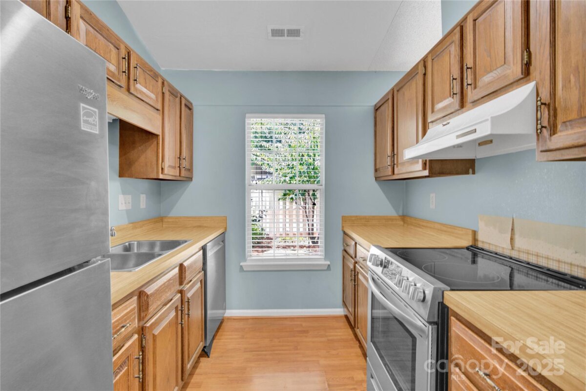 If you are searching for low maintenance living in a beautiful complex, a home to put your personal stamp on, look no further. This is the quaint, corner unit townhome in a convenient location you have been waiting for. Close to Southpark Mall, the Harris, Atrium Pineville, Ballantyne Bowl, 485, and the airport; this home is also only 00.2 miles from Quail Corners Shopping Center which includes Harris Teeter, restaurants, a coffee shop, and Walgreens. This very light and bright one story home features a vaulted ceiling throughout the main living area, dining, and kitchen. Sliding doors open to a private, enclosed patio with a large storage closet. The galley kitchen includes newer stainless steel appliances and a large window looking out to the patio. The primary bedroom is flanked by a large walk in closet on one side and a vanity/changing area on the other side; with large double windows in the center. The secondary bedroom features a double door entry, two windows, and another ample closet. The bedrooms are joined by a Jack and Jill bathroom. This home has great flow, many windows, storage, and a lot of potential. This is your chance to make this home your own. You can always renovate a building, but you cannot renovate location. This home is being sold As-Is. Tour it today!