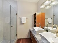 **The Seller is offering to prepay $15K, with an acceptable offer, toward temporarily elevated HOA dues related to a completed exterior community project**Welcome to Lofts Dilworth, a contemporary condo complex located in the heart of Dilworth and just minutes to Southend! Enjoy the wonderful walkability to some of Dilworth's best restaurants or enjoy the ease of shopping at the Atherton Mill in Southend. This 3 bedroom 3 FULL bath condo is a rare floorplan in this complex and with it being an end unit, located closest to the city, you cannot beat the Uptown Charlotte & Southend skyline views from your very own rooftop terrace! The main level consists of two spacious bedrooms, each with their own ensuite bath and a laundry room that features a stackable washer & dryer which convey with the unit. The upper level features a sleek and modern kitchen that is open to the main living room and breakfast nook and then a third bedroom with it's own ensuite third full bath. Enjoy the lovely exterior views from every level out the floor to ceiling windows that flood the property with natural light. Hard to find this price for this much square footage in the heart of Dilworth! This condo has been freshly painted throughout and had a new HVAC unit installed in 2024. The windows have treatments/shades that will convey.