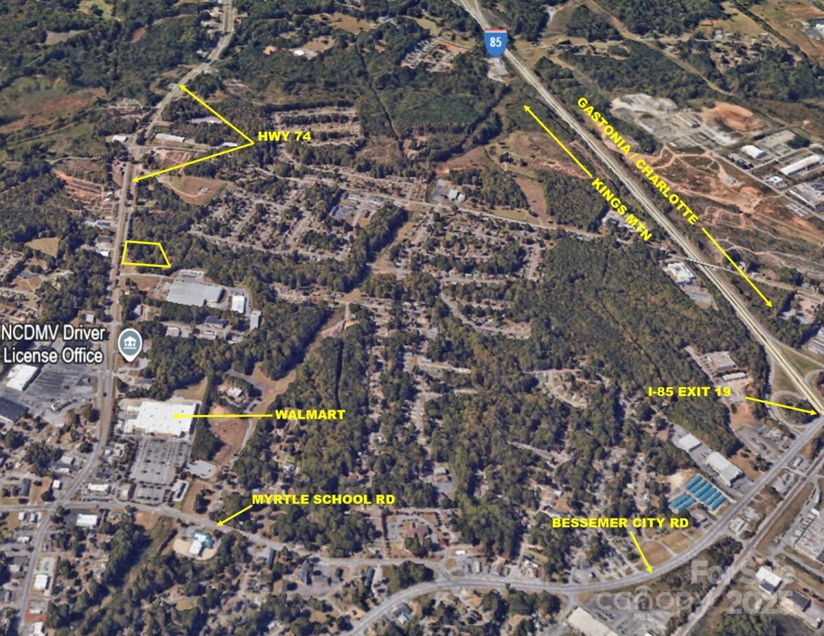Prime 3.5± Acres of I-2 Zoned Land – West Gastonia / Franklin Blvd-Hwy 74 Corridor located in the rapidly developing Franklin Blvd / Hwy 74 corridor of West Gastonia, near the base of scenic Crowders Mountain. The property offers outstanding accessibility with three nearby I-85 exits within 1–2 miles and direct Hwy 74 connector access to I-85 within approximately 5 miles. Featuring approximately 375 feet of frontage on Hwy 74, the site has a commanding elevation and very favorable topography, making it highly suitable for development. City utilities available. The existing structure appears to be in excellent condition and could serve as a temporary or permanent office space for new owner. Location is ideal for self-storage development, business/flex space, warehouse, or General industrial applications. Refer to the attached UDO for allowable uses under the current I-2 zoning. Seller notes that the existing homestead is currently served by a shared well with city sewer connection.