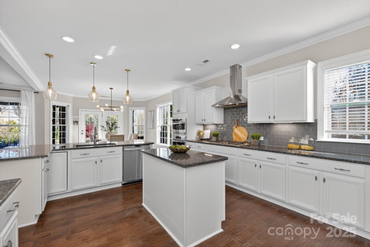 This popular Blythe Floorplan by M/I Homes has been upgraded with thoughtful details and ready for its new owner! Downstairs features wood floors throughout, chef’s kitchen with white cabinetry, tile backsplash with ample counter & storage space, center island + separate breakfast bar, wall oven + microwave, gas cooktop, walk-in pantry & breakfast area + formal dining room! Spacious great room with fireplace & downstairs bedroom / bathroom. Upstairs, the primary suite is a true retreat—complete with spa-like bathroom, dual vanities, soaking tub, and a custom walk-in Closet-by-Design that’s to die for! Step outside to your private balcony overlooking the backyard sanctuary. Movie nights come alive in the oversized bonus/media room, complemented by an open loft area for even more living space. Three additional bedrooms, two full baths complete the upstairs. Nestled on a landscaped .35 acre lot, the backyard is a fenced private oasis featuring lush gardens, a koi pond, and an extended paver patio ideal for entertaining or quiet relaxation. The courtyard driveway leads to a two-car garage plus an additional one-car garage. Fresh interior and exterior paint make this home shine. Located in the desirable Blume community, enjoy sidewalks throughout plus a pool, playground, tennis courts, and volleyball courts. With Top rated schools, nearby grocery stores, restaurants, shopping and easy access to I-485, come experience why this home is so loved!