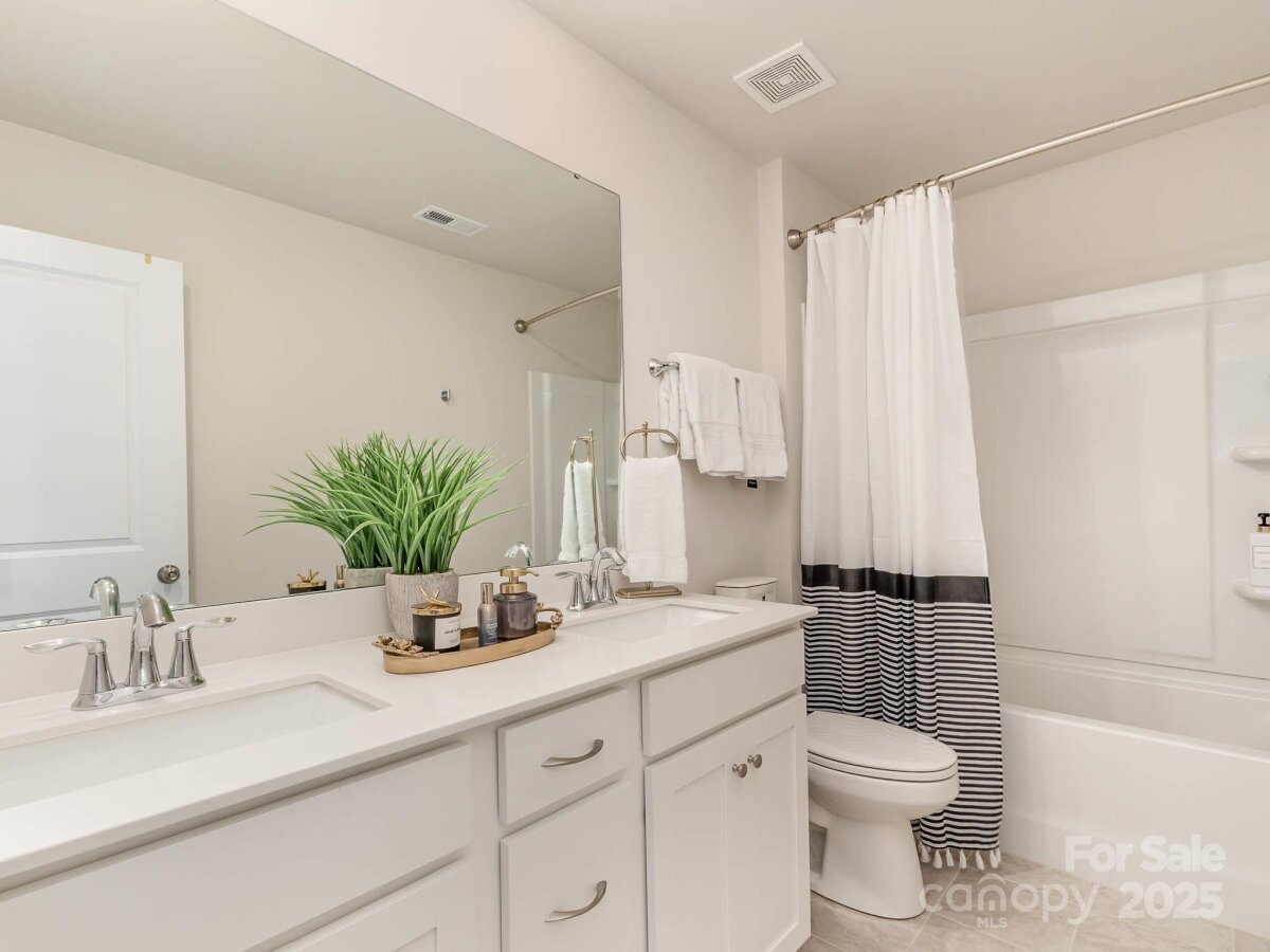 Nestled in the coveted Elizabeth Subdivision of Fort Mill, this 2024-built home exudes a sophisticated blend of modern elegance and meticulously curated design upgrades. Set on a premium lot with breathtaking horizon views, the home benefits from additional privacy with an HOA-maintained lot beside it. Inside, every detail has been thoughtfully enhanced, starting with the gourmet kitchen—equipped with a professional-grade gas cooktop, an oversized farm sink and a striking gold faucet. The formal dining room, graced by an upgraded chandelier and built-ins for a wet bar, is perfect for hosting elegant dinners, while the expansive living room boasts intricate wall paneling, lighting, and a refined ambiance. A set of French doors leads to a tranquil home office, complete with an upgraded chandelier and wall lighting that adds warmth and sophistication. The home’s staircase, featuring sleek metal rod railings and luxurious LVP steps. Upstairs, the primary suite and four generously-sized bedrooms offer stunning views, with luxurious finishes that elevate each space. Additional highlights include an upgraded vanity in the guest half-bath, epoxy flooring and freshly painted walls in the garage, and a smart home system powered by Google. Blinds and custom window treatments throughout enhance the home’s polished aesthetic. The exterior boasts classic shutters, stone accents, and artful landscaping, with front garden lighting that beautifully illuminates the entry. Future residents will also enjoy the upcoming amenities in the Elizabeth Subdivision: pool and cabana, fitness center, park, playground, pickleball court, trail and bocce ball. With its unparalleled design and premium features, this home is truly a masterpiece—better than new in every sense.