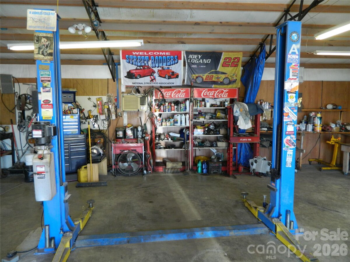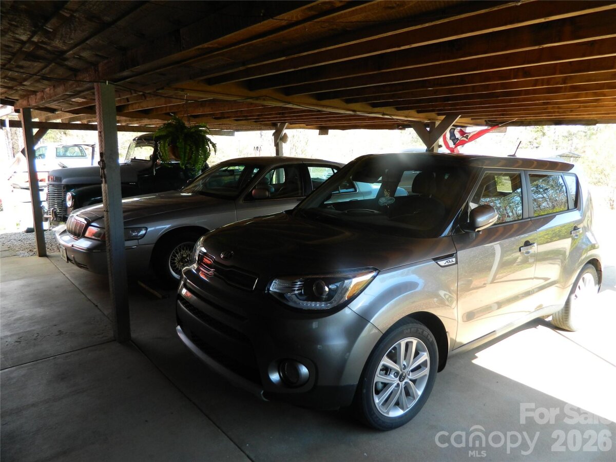 Car lover’s dream property in the country! This 3-bedroom, 2-bath ranch offers exceptional garage and covered parking space, including a 2-car attached garage, 3-car attached carport, 4-car detached metal garage, and an additional 1-car detached carport perfect for a motorhome or RV. Step inside to a spacious, open layout featuring a well-appointed kitchen with island, dining area, and wall opening to the living room, highlighted by a cozy fireplace with gas logs. Recent updates include a new heat pump and Rinnai instant hot water heater, both replaced in 2025. Enjoy outdoor living with a full-length covered front porch, rear patio, and a fenced area of approximately half an acre—ideal for pets or outdoor activities. The impressive 36x30 detached metal garage is a standout feature, fully equipped with a car lift, 5 HP compressor, concrete floors, insulation, and its own heating and air conditioning—perfect for hobbyists, mechanics, or anyone needing a versatile workspace. All this with no city taxes!