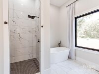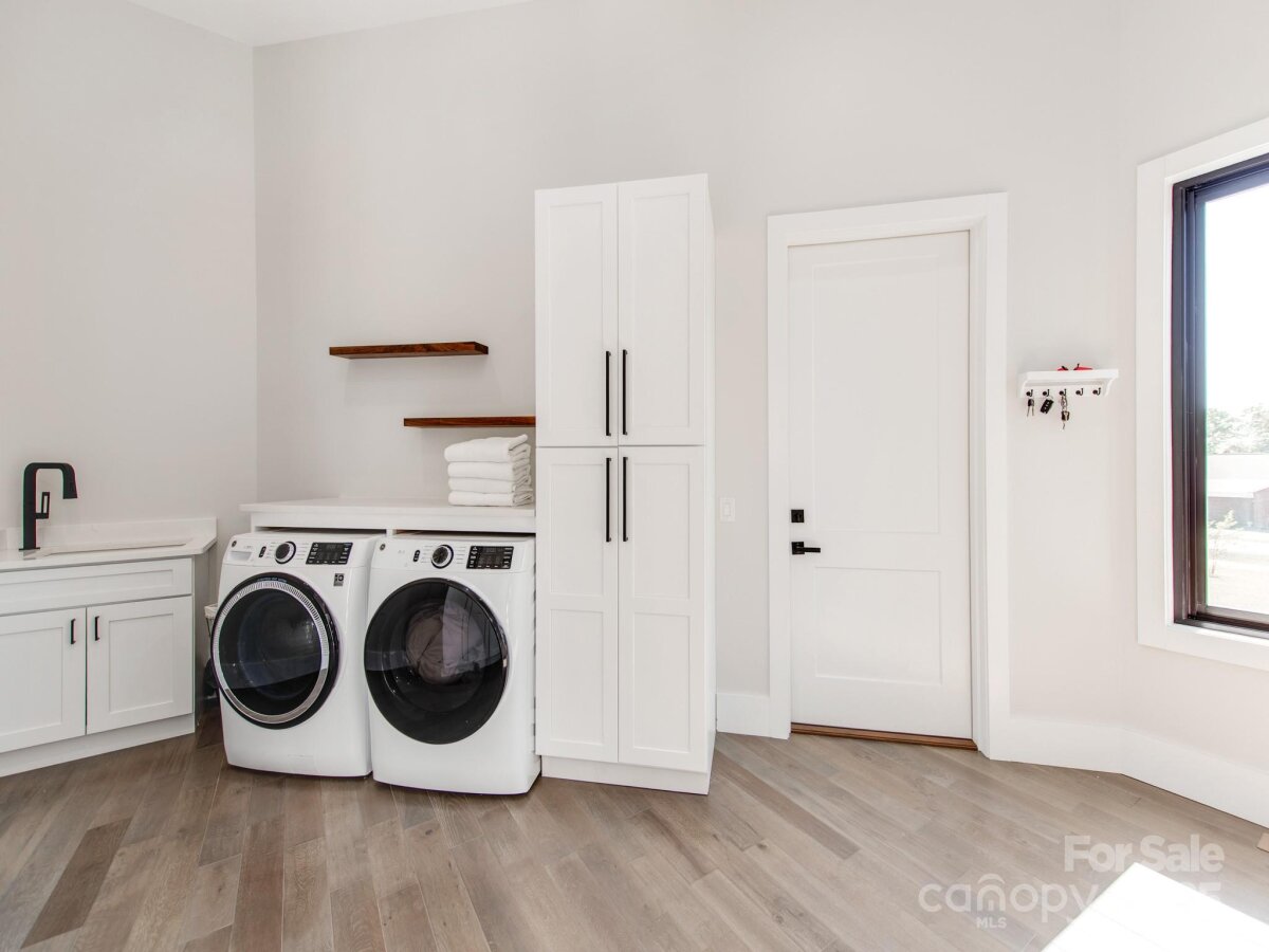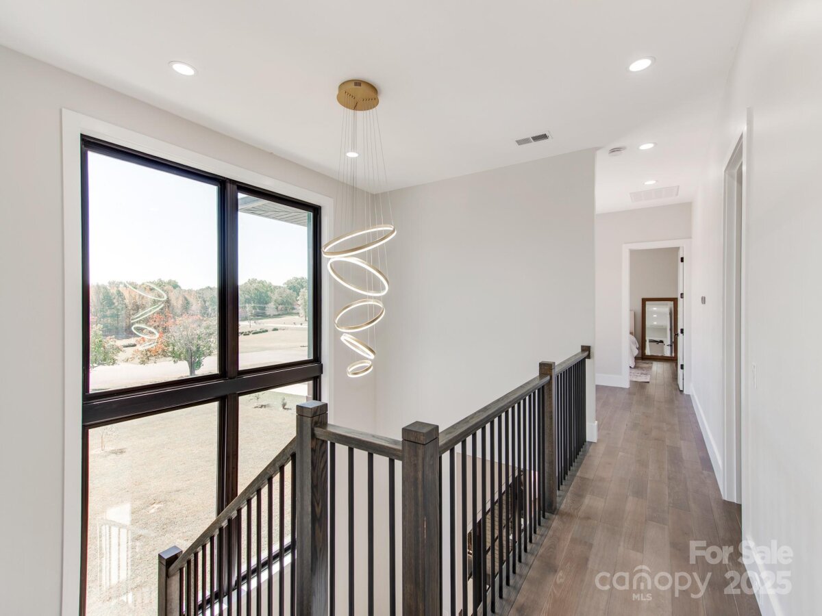 New Construction –2025 Build- Contemporary Elegance Meets Modern Functionality. Discover this stunning newly built contemporary brick home, designed with an open-concept floor plan and soaring 12'+ ceilings on the main level. From the moment you arrive, you’ll be captivated by the striking front entrance featuring modern glass double doors and a dramatic open staircase. Inside, expert craftsmanship shines through with custom woodwork, elegant lighting fixtures, and rich hardwood flooring throughout. Abundant windows fill the space with natural light, creating a warm and inviting atmosphere. The chef’s kitchen boasts a sleek L-shaped design with expansive counter space, a large center island, and oversized windows overlooking the outdoors. The kitchen seamlessly flows into the spacious family room and sophisticated dining area—ideal for entertaining or everyday living. Step out from the family room to a generous 360sqft covered rear porch, perfect for relaxing or hosting gatherings. Main-Level Retreat:Luxurious primary suite on the main floor features a spa-inspired bathroom with premium finishes—a true owners retreat. Large laundry/keeping room with a convenient half bath adds functionality to the main level. The oversized 759sqft garage is fully insulated, heated, and cooled—ideal for a workshop, gym, or additional flex space. Upper-Level Comfort:Three large bedrooms each offer large walk-in closets and private en-suite bathrooms. A versatile flex space opens to a 95sqft walk-out porch. 10' ceilings and hardwood floors continue throughout the upper level. Outdoor Features:Set on a large, level lot with a private backyard that backs up to a tree line—offering both beauty and privacy.*some virtually enhanced grass in backyard photo*Don't miss your opportunity to own this exceptional home! Schedule your private showing today.