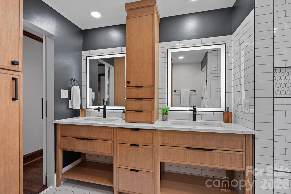 Located on a cul-de-sac in one of Charlotte’s most sought-after neighborhoods, this beautifully updated 4,587 sq ft home offers an exceptional blend of elegance, comfort, and space. Set on 1.02 acres, the property provides a rare sense of privacy and room to enjoy the surrounding landscape while still being part of an established community. The main level features a bright, open-concept floor plan designed for effortless living and entertaining. At the heart of the home is the renovated kitchen, thoughtfully designed with a professional-grade ZLINE range along with a prep sink, beverage sink, and main kitchen sink—perfect for both everyday functionality and hosting gatherings. Expansive wraparound porches invite you to relax and take in the beauty of the property, offering multiple outdoor spaces to enjoy the peaceful setting. The primary suite is conveniently located on the main level and has been beautifully updated, creating a private and serene retreat. The finished basement offers second living quarters, providing flexibility for guests, multi-generational living, or an additional recreation space. A three-car garage and generous living areas throughout complete this remarkable property, offering the rare opportunity to enjoy cul-de-sac living on over an acre in one of Charlotte’s premier neighborhoods. * 2026-27 School Year, the middle school will become JM Robinson Middle School.