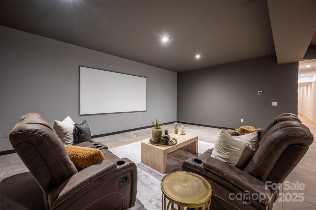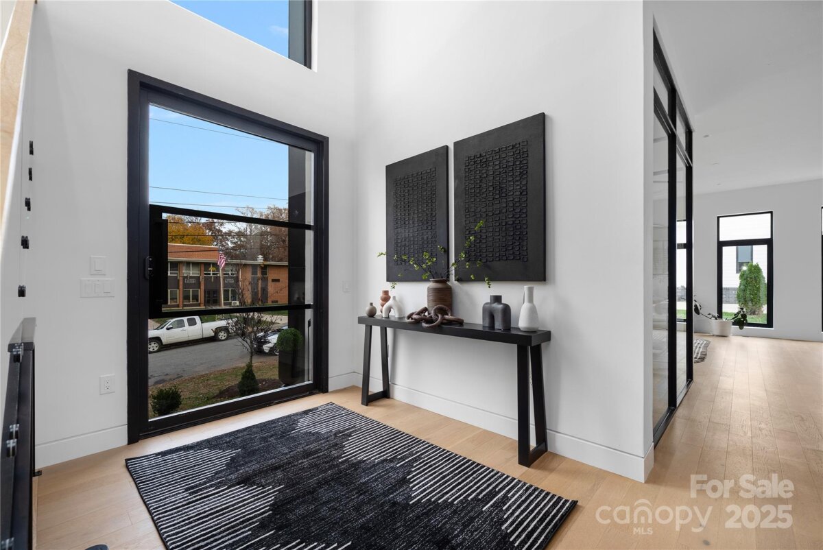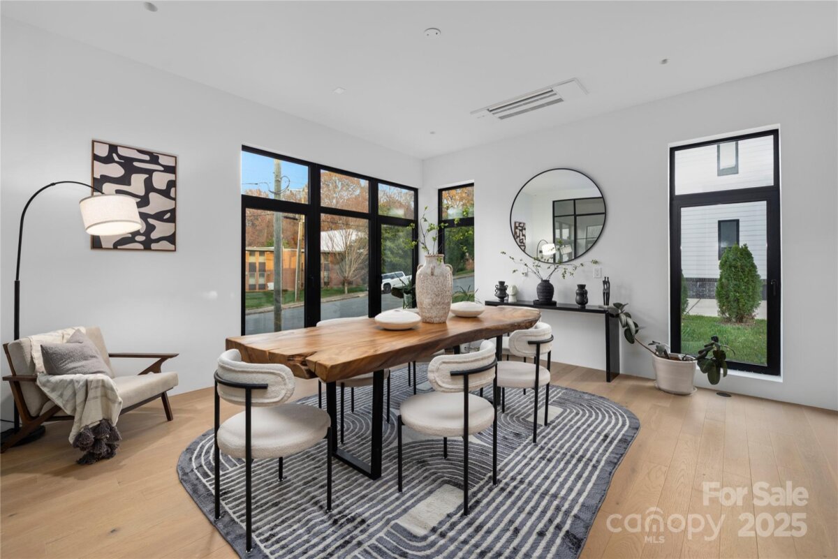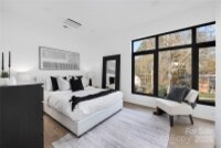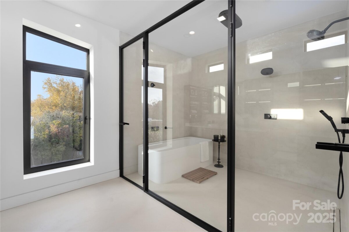 Completed in 2025, this breathtaking 8,010 sq. ft. luxury residence features cutting-edge design, curated finishes, and an amenity-rich floor plan tailored for upscale living in a prime Charlotte location. Set on a 0.3-acre lot near Plaza Midwood, Elizabeth, and Uptown, this six-bedroom home offers expansive living spaces and high-end construction details throughout. The open-concept main level features a striking two-story foyer, a chef’s kitchen with premium Miele appliances, a Sub-Zero wine fridge, Cabico custom cabinetry, and a dramatic granite waterfall island, plus a full scullery for additional prep and storage. The adjoining living and dining areas flow through oversized sliding glass doors to the outdoor patio for truly seamless indoor-outdoor living. A glass-enclosed flex room is ideal for a tasting room or office, while the main level also includes an ensuite guest bedroom and a spacious gym/recreation room. The upper-level hosts three additional guest bedrooms with ensuite bathrooms, a lounge with nano-sliding doors, access to a large patio with skyline views, and a powder room. The primary suite boasts two private balconies, dual custom closets, and a spa-inspired bath with a soaking tub inside the oversized shower suite. The impressive lower level offers a full guest apartment with a bedroom, living room, full bathroom, washer/dryer connection, and mini kitchen. The dedicated theater room is expertly engineered for a true cinematic experience, featuring Dolby Atmos®–ready acoustic design, pre-wiring for full surround sound, specialized screen-optimized wall finishes, and ample space for luxurious seating and immersive entertainment. Additional lower-level spaces include a lounge/bar space, powder room, and mudroom with storage. With triple-pane windows, superior wall foundation, concrete exterior covering, multi-zone climate control, and premium energy-efficient systems, this home delivers luxury, performance, and lifestyle at an unmatched level.