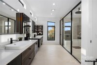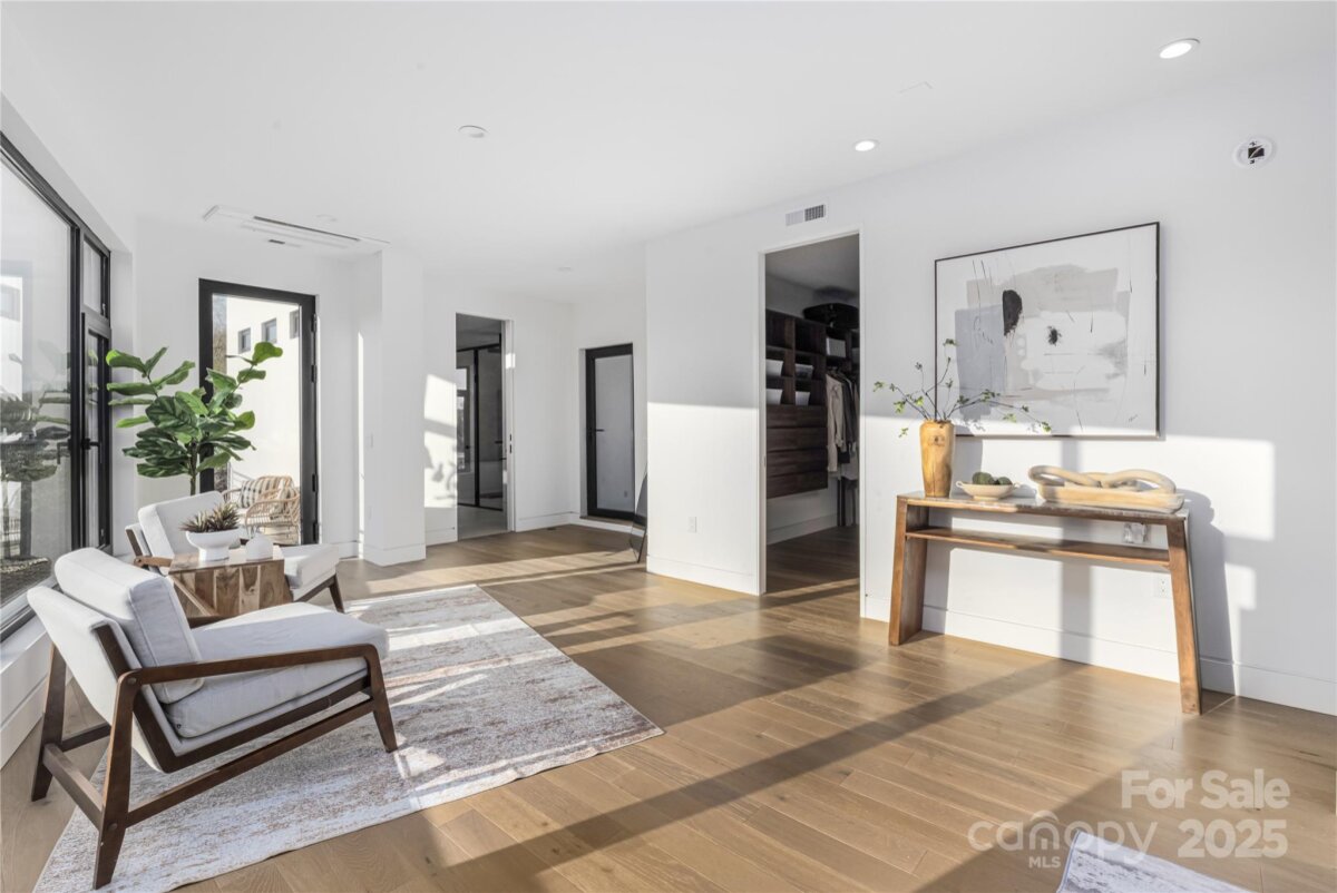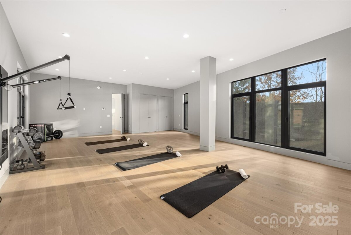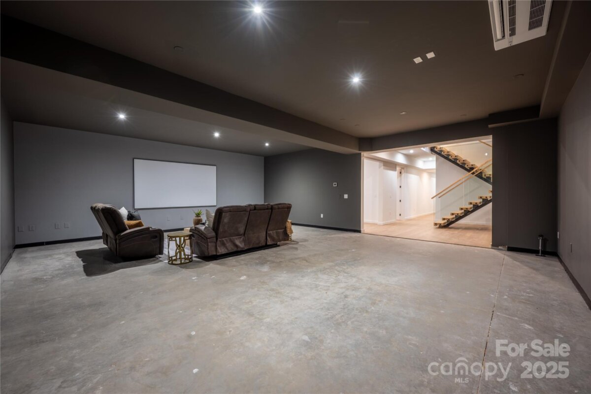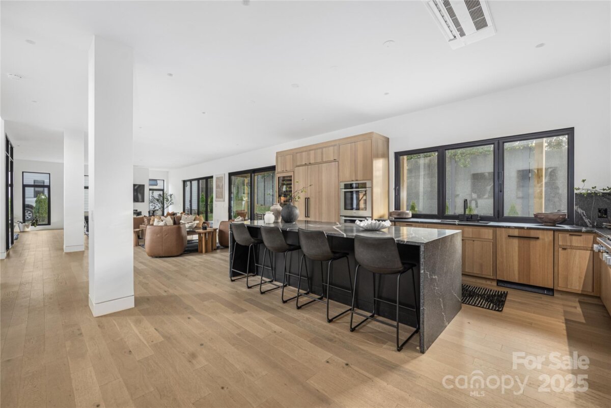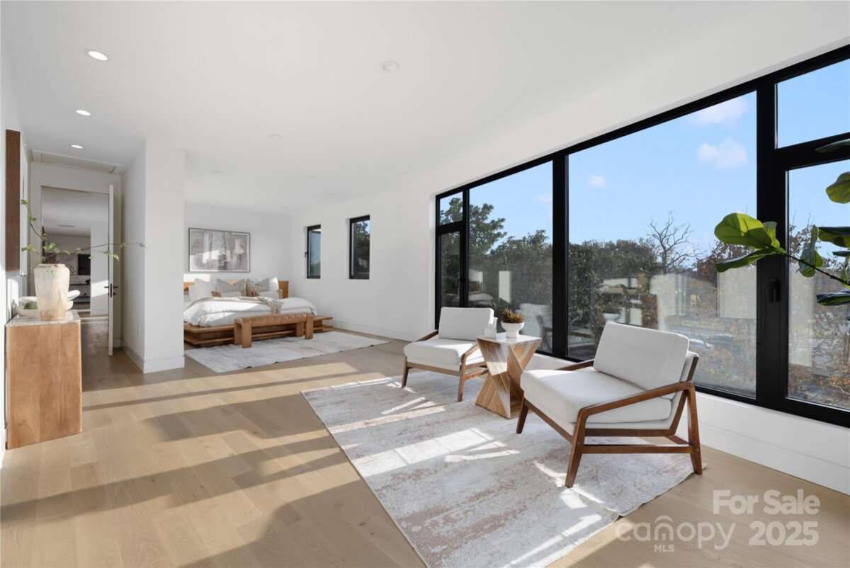Completed in 2025, this breathtaking 8,010 sq. ft. luxury residence features cutting-edge design, curated finishes, and an amenity-rich floor plan tailored for upscale living in a prime Charlotte location. Set on a 0.3-acre lot near Plaza Midwood, Elizabeth, and Uptown, this six-bedroom home offers expansive living spaces and high-end construction details throughout. The open-concept main level features a striking two-story foyer, a chef’s kitchen with premium Miele appliances, a Sub-Zero wine fridge, Cabico custom cabinetry, and a dramatic granite waterfall island, plus a full scullery for additional prep and storage. The adjoining living and dining areas flow through oversized sliding glass doors to the outdoor patio for truly seamless indoor-outdoor living. A glass-enclosed flex room is ideal for a tasting room or office, while the main level also includes an ensuite guest bedroom and a spacious gym/recreation room. The upper-level hosts three additional guest bedrooms with ensuite bathrooms, a lounge with nano-sliding doors, access to a large patio with skyline views, and a powder room. The primary suite boasts two private balconies, dual custom closets, and a spa-inspired bath with a soaking tub inside the oversized shower suite. The impressive lower level offers a full guest apartment with a bedroom, living room, full bathroom, washer/dryer connection, and mini kitchen. The dedicated theater room is expertly engineered for a true cinematic experience, featuring Dolby Atmos®–ready acoustic design, pre-wiring for full surround sound, specialized screen-optimized wall finishes, and ample space for luxurious seating and immersive entertainment. Additional lower-level spaces include a lounge/bar space, powder room, and mudroom with storage. With triple-pane windows, superior wall foundation, concrete exterior covering, multi-zone climate control, and premium energy-efficient systems, this home delivers luxury, performance, and lifestyle at an unmatched level.