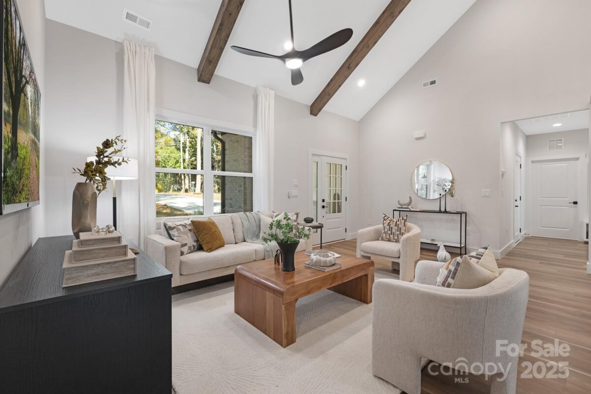 Check out this beautiful, new build Modern Farmhouse Style with wood beams and custom details throughout. NO HOA on 0.73 acre lot! Step into the open-concept living area with vaulted ceilings and admire the spacious kitchen featuring White Quartz countertops, all with soft close Shaker style cabinets and stainless steel appliances. This soaring vaulted ceiling floor plan has a primary bedroom with a walk-in closet and elegant ensuite bath with dual vanity, freestanding soaking bathtub & custom tile shower and two additional bedrooms with large closets. Thoughtfully selected, neutral finishes, LVP floors, solid-core doors a comfortable and peaceful living space. Spacious laundry room with cabinets and a sink! The large covered front porch is a great place to enjoy cup of coffee. Featuring Large scenic beautiful and private backyard with big covered back porch perfect for family gatherings. Spacious garage to easily fit two cars and a lot of room for additional storage. Extra long and wide driveway for additional parking! Come and see it. This home has it all!