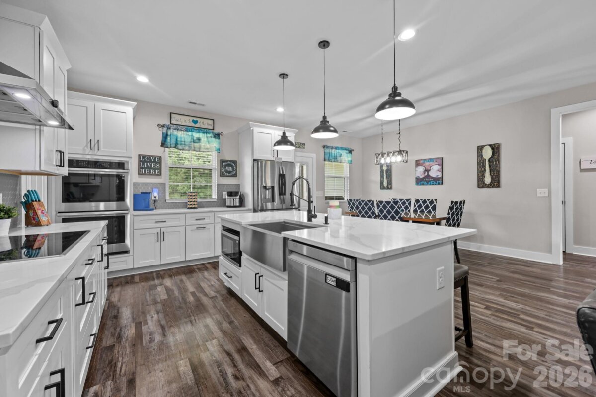 Like new custom-built home on 2 acres in the desirable North Stanly School District! Built in 2023, this 4 bedroom, 2 bath home offers 1,963 heated sq ft with an additional 809 sq ft unfinished bonus area ready for expansion. The bonus space is already prepped with electrical, plumbing for a bathroom, and a dedicated line set for a second HVAC unit—perfect for future living space or guest suite. Inside, you’ll find 9 ft ceilings, LVP flooring throughout, and quartz countertops. The spacious kitchen flows seamlessly into the living area, and the laundry room includes a utility sink for added convenience. Enjoy outdoor living with covered front and back porches overlooking a large, level yard. The 2-car attached garage provides ample storage. No HOA means flexibility and freedom! This move-in ready home offers modern features, room to grow, and peaceful country living—don’t miss it!