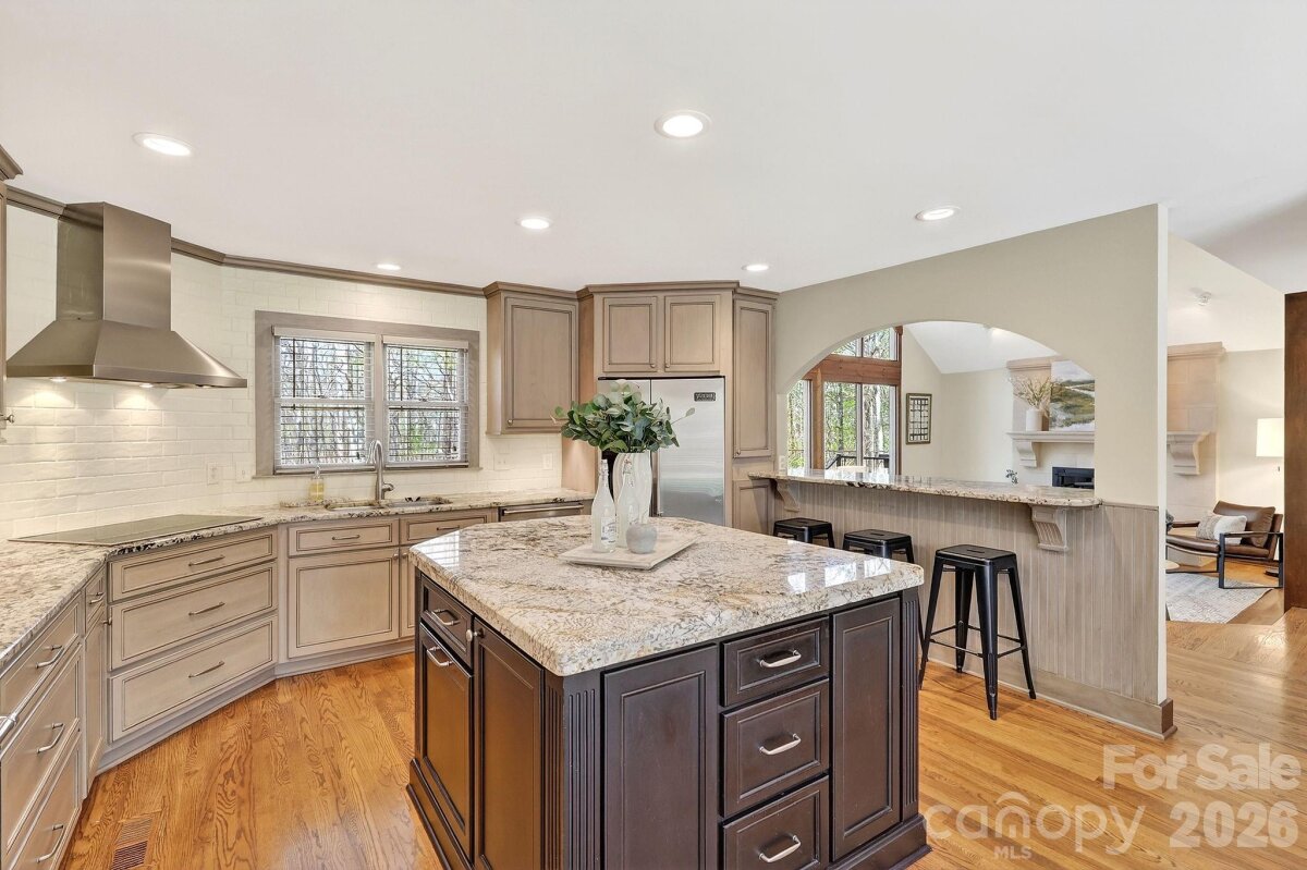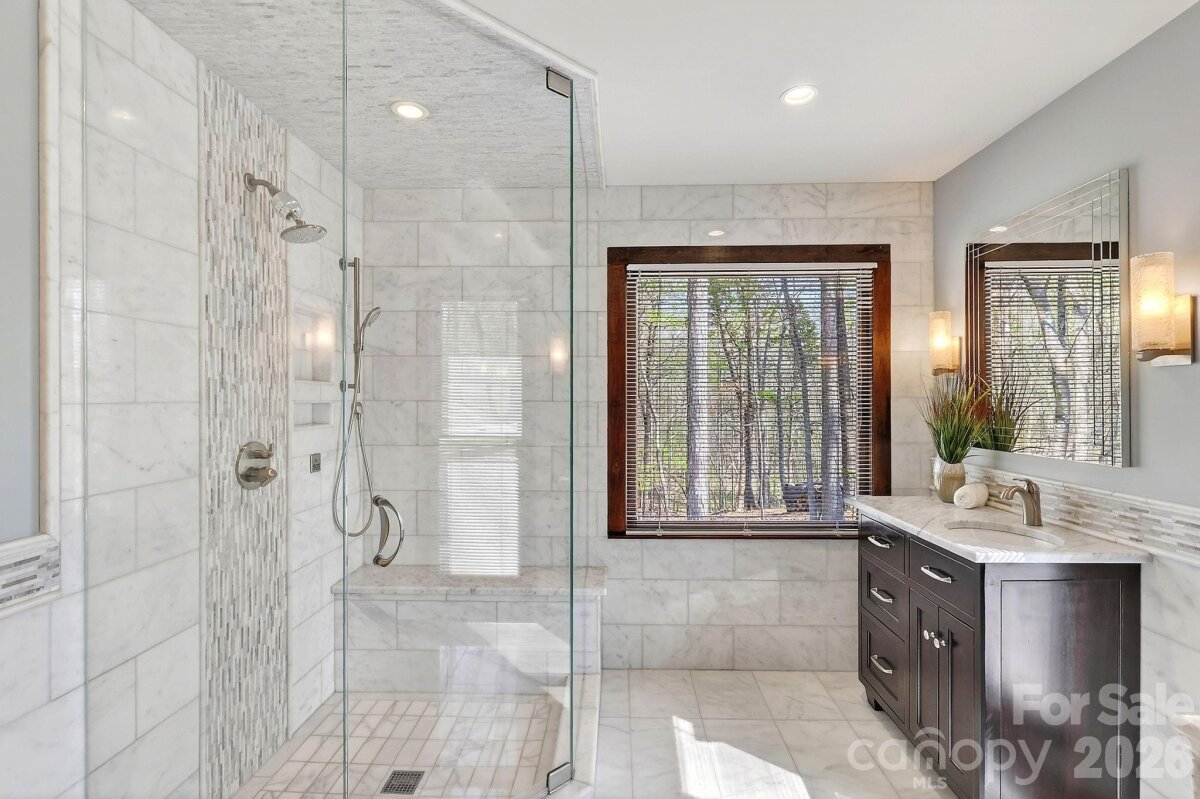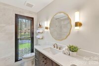 Rarely does a property offer this level of privacy, craftsmanship, and convenience all in one. Nestled on four serene acres, this one-of-a-kind estate is a true retreat—complete with moss-lined walking paths and a peaceful babbling creek—yet just a short stroll to the charm and energy of downtown Waxhaw’s shops, dining, and community events. A circular driveway welcomes you to the thoughtfully designed and meticulously maintained grounds. Step onto the covered front porch and through custom solid wood arched double doors by Majestic Millwork, where timeless elegance meets modern comfort. You will fall in love with the stunning great room with vaulted ceilings, a limestone fireplace, and a wall of windows—professionally tinted for comfort and efficiency. The kitchen features Viking Professional appliances, a Sub-Zero beverage fridge, KitchenAid cooktop, and timeless, designer-selected, Brazilian granite countertops. The primary bath offers a true spa experience with heated marble floors, a steam shower, and custom cabinetry by renowned craftsman Josh Burch with marble countertops and convenient mirrored pocket door to the walk-in closet. Additional highlights include solid wood interior doors with premium Emtek hardware throughout, indoor and outdoor built-in speaker system for seamless entertaining, and a beautifully renovated hall bath with marble floors, soaking tub and quartz countertops. The expansive outdoor deck has rope and under-counter lighting, ideal for evening relaxation. A versatile basement flex room with an 80+ inch television that conveys. Two oversized garages provide exceptional versatility, complete with built-in workbenches and ample shelving for storage and projects. Zoned for Waxhaw Elementary and Cuthbertson Middle & High Schools, noted for their strong performance and favorable GreatSchools.org ratings (buyer verification recommended). Lovingly maintained by its original owners, this home is a rare blend of natural beauty, refined luxury, and walkable lifestyle—an exceptional opportunity to experience the very best of Waxhaw living!