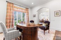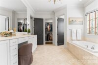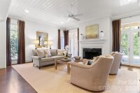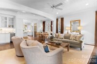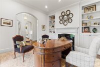 Located on .49 acres in the beautiful Myers Park neighborhood, this custom-built 5 bedroom home combines charm with functional design—built for entertaining and daily living. 10-foot ceilings on the main level and 9-foot ceilings upstairs create an open, spacious feel throughout. The recently updated chef's kitchen features Taj Mahal quartzite countertops and premium appliances including Thermador double ovens, Sub-Zero refrigerator, Sub-Zero wine fridge, and Bosch dishwasher. Two bar areas and an open layout to the family room provides effortless hosting. The downstairs primary bedroom includes heated bathroom floors, separate walk-in closets, and washer/dryer connections with direct access to the private terrace and fenced backyard. Upstairs you'll find three spacious bedrooms, an upstairs laundry room, and a bonus room providing plenty of space for everyone. In addition, the 440-square-foot guest suite above the 2-car garage has a private entrance and full bath—ideal for visitors, a home office, or multigenerational living. The covered terrace features a gas fireplace, Weber grill connected to a built-in gas line, and overlooks a gorgeously landscaped fenced yard. A large circular driveway with porte-cochère offers easy loading and unloading. Recent updates include: new HVAC systems (2018, 2024), crawlspace encapsulation (2023), fresh paint interior (2022) and exterior (2020). This home is well-maintained, move-in ready, and conveniently located to excellent schools, upscale retail and dining.