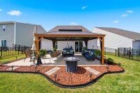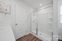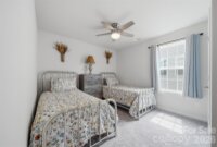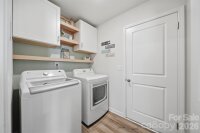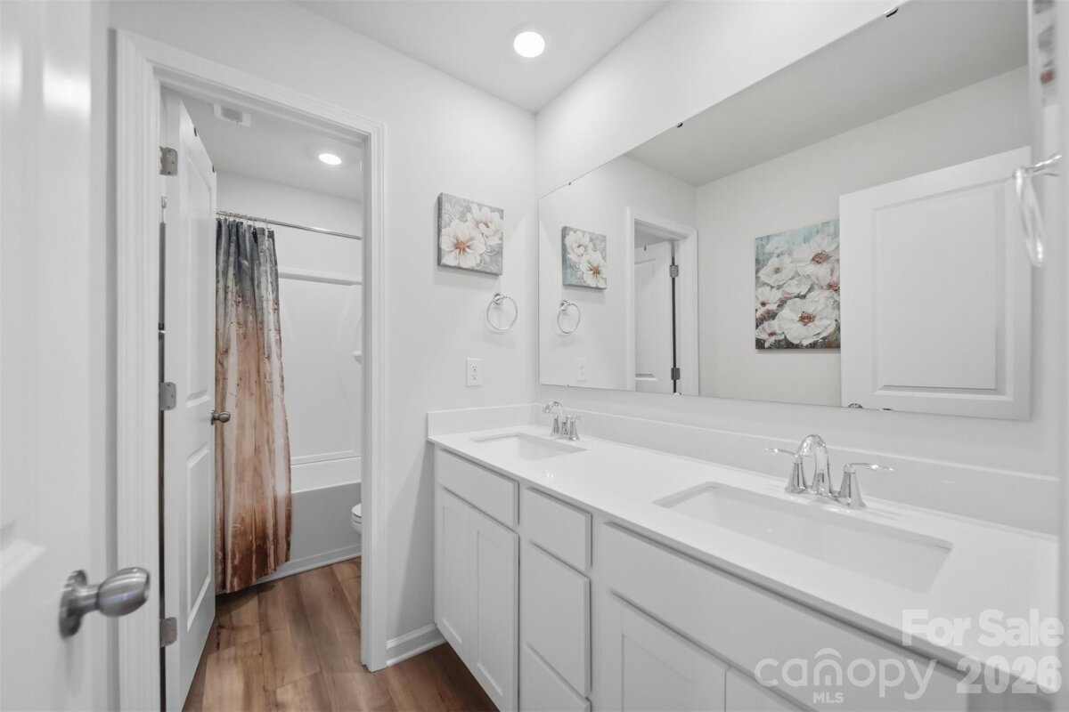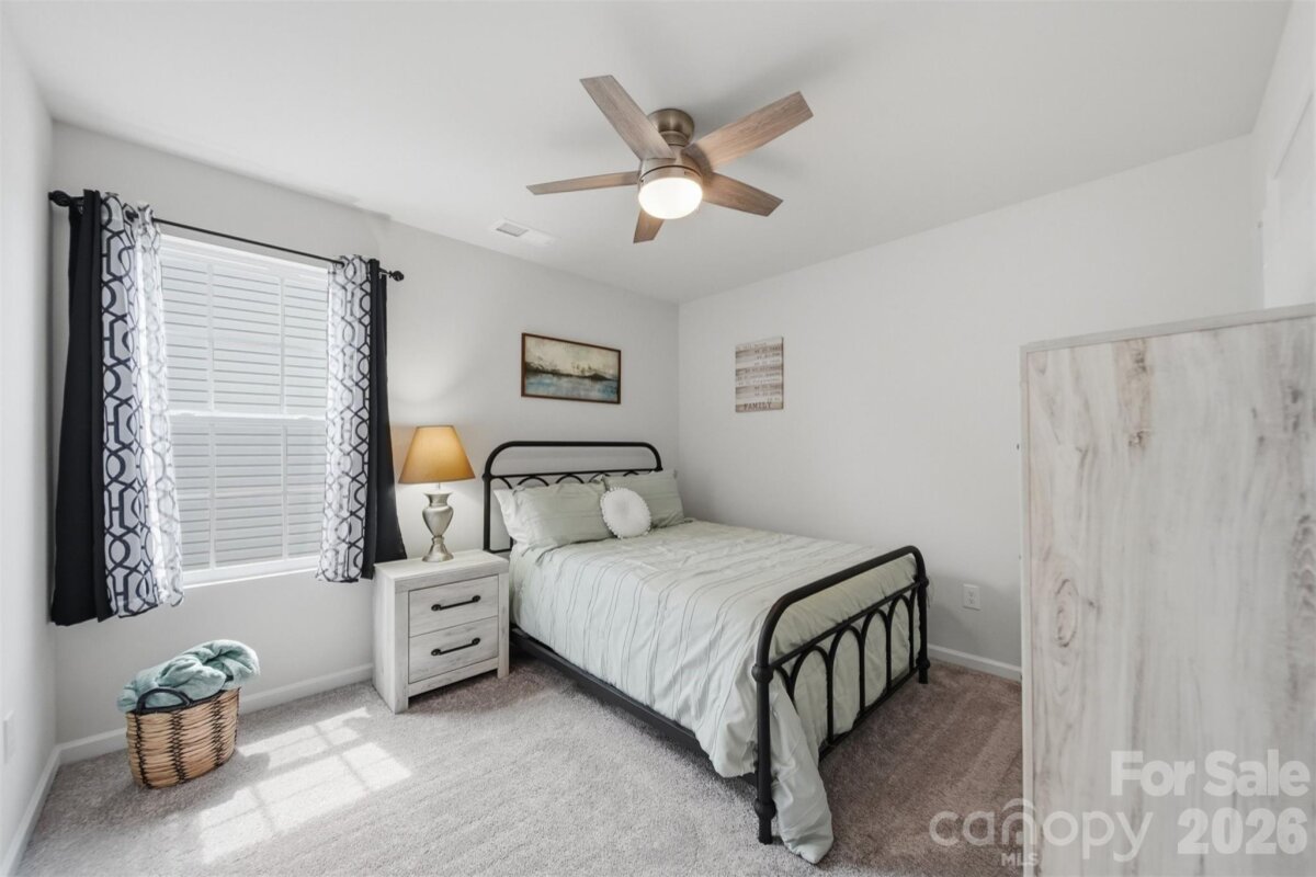Stunning, like-new property features a thoughtful layout with a primary en suite conveniently located on the main floor, along with four additional spacious bedrooms and a relaxing loft on the upper level. The main floor offers a large entryway and a half bath that opens into a spacious living area, seamlessly integrating the kitchen, dining, and living room. The kitchen has been upgraded with quartz countertops, a large island with designer teardrop lighting, and a walk-in pantry featuring new oak shelving. Similar high-quality oak shelving and new cabinets have also been installed in the laundry room for added organization. The upper level provides a versatile loft space and four bedrooms that share a well-appointed full bath with a double vanity. Additional functional features include a garage equipped with a built-in workbench and a dedicated outlet for an extra refrigerator or freezer, as well as an extended driveway for discreet trash can storage. The sellers have invested in several custom upgrades throughout the home, including custom wood blinds, new ceiling fans, and a glass-and-screen front door. The outdoor living space is equally impressive, featuring a level, fully fenced backyard, a large concrete patio with a pergola perfect for entertaining, and a custom wood-built shed. Residents will also enjoy the convenience of being within walking distance of the community pool and cabana.
