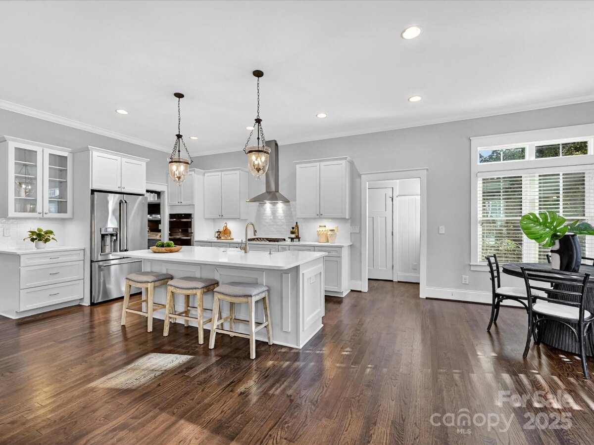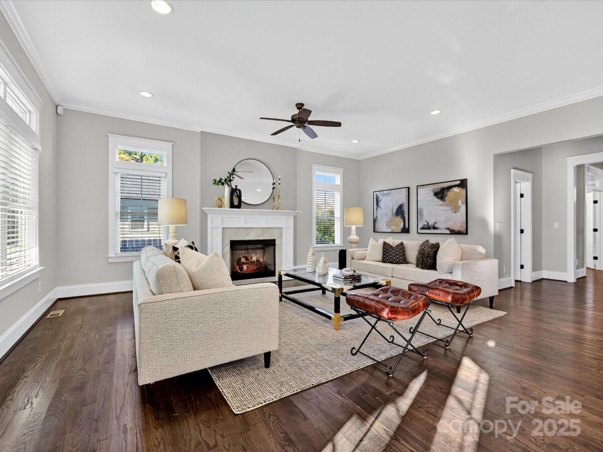 Welcome to this stunning 5-bedroom, 3.5-bath home offering an ideal blend of luxury, comfort, and functionality. The main floor features a versatile guest suite or private study. Gorgeous hardwood floors flow throughout the first level, complementing the open-concept layout that connects the gourmet kitchen and spacious family room, an entertainers dream! Enjoy abundant natural light and thoughtful details like a convenient drop zone off the two-car garage with half bath. Upstairs, you'll find a huge bonus room perfect for a media space, playroom, or gym The large primary suite offers double vanities, a spa-like bath, and an amazing walk-in closet. Step outside to the covered rear porch with built-in heaters, perfect for year-round enjoyment. The private, beautifully landscaped, fenced backyard includes a custom hardscaped fire pit area—ideal for relaxing or entertaining under the stars. Located in the highly desirable Sedgefield neighborhood, this home offers exceptional convenience—just minutes from Charlotte’s vibrant South End District, renowned for its endless dining options, boutique shopping, and lively atmosphere.