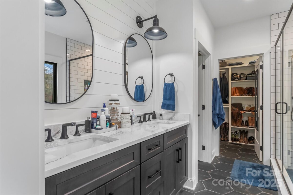 Move right in and you will never want to leave this basically brand new 4BR, 3.5 Bath modern farmhouse sitting on approx 3.25 acres of land in gated lake community. This property has it all from large family room/kitchen area with oversized island w/granite countertops and tons of custom cabinetry w/stainless steel appliances. Vaulted ceilings on main w/LVP flooring throughout main areas. Gas log FP w/ship lap accent wall and recessed ceiling in dining area. Tons of entertaining space with full length covered back porch w/easy access from owners bedroom or family room to the outdoors. Main floor owners bedroom w/vaulted ceiling, transom window over bed and ship lap accent wall plus large owners bath w/dbl vanity, large soaker tub and walk in shower plus oversized walk in owners closet. Upstairs boast 3 more ample size bedrooms and 2 full baths plus hidden bonus room. Also, home has attached 2 car garage w/electric car charger and detached 2 car garage/workshop w/electric charger plus bonus area upstairs for workout area or home office. Detached garage is heated/cooled w/mini split system. Home also has rinnai gas water heater, home wired for backup generator and crawlspace encapsulated w/dehumidifier system. All this on gentle knoll overlooking community lake and short drive to Morganton, Asheville, Marion or beautiful Lake James.