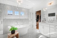 Perfectly situated in the heart of Charlotte, just minutes from Dilworth, South End, SouthPark, Uptown, and Freedom Park. Enjoy front porch living on a quiet street in the heart of Sedgefield, one of Charlotte’s most desirable neighborhoods. Built in 2022, this beautifully maintained home feels like new construction. Inside, a bright French door study and a formal dining room welcome you, flowing seamlessly into the open great room and a well-appointed kitchen with a butler pantry/workstation. Perfect for entertaining or everyday living. Hardwood floors extend throughout the entire home, and the spacious primary suite offers a luxurious retreat with a soaking tub, larger than life shower, and a large walk-in closet. The third floor features a 985 sq. ft. bonus room for recreation, work, or play. Step outside on to the back covered porch to an over-sized flat .46 acre fenced yard with irrigation in place, ready for outdoor living, gardening, or gathering with friends and family. With the generous space behind the fence, there's a potential to install a pickleball court or outdoor amenities. This home also features an EV charger in the garage and a long extra-wide driveway.