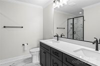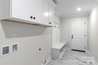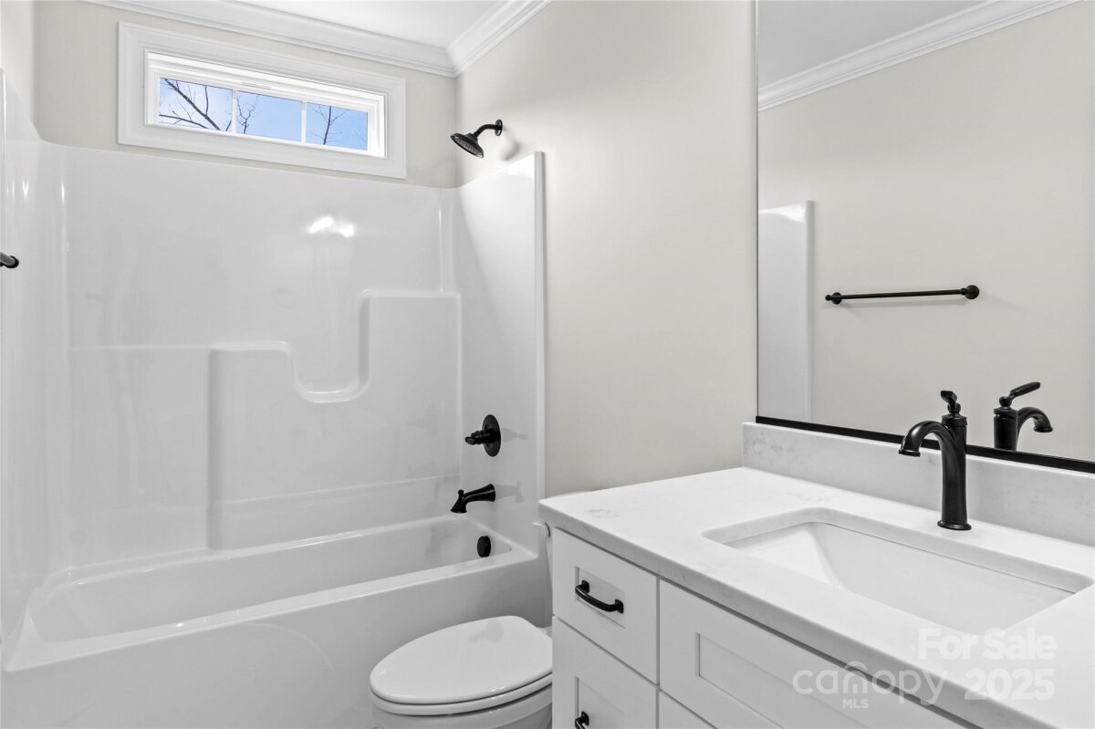 Beautiful, One Level, New Construction in North Davidson ... Vinyl Board and Batten Siding & Stone Accents...Almost an acre lot...Notice all the custom details! Inviting Covered Front Porch, Beautiful Hardwood Floors throughout Living Room, Kitchen and All bedrooms, Vaulted Living Room Ceilings and stone accented gas log fireplace ..Kit offers stainless appliances, Quartz & Granite Countertops, Subway Tile Backsplash, Island with Bar Seating ...Mud Room with drop zone, Storage Cabinets, Pantry and Coat Closet ... Tile Flooring in Bathrooms and Mud Room...Recess lighting throughout... Primary BR w double tray ceilings & walk-in closet, Primary Bathroom w double vanity, Beautiful walk-in Tiled Shower w recessed shower niche and corner seat... Be sure to step outside to the covered Back Deck to relax and enjoy the wooded view.. 1 Car Attached Garage w Insulated Garage Door...Preferred Lender Amy Cain Tarr with Canopy Mortgage-Up to $3000 lender credit (see agent only)