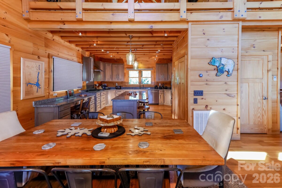 LAKE LURE PRIVATE LAKEFRONT ESTATE sitting on 2.82 acres, surrounded by spectacular mountain and lake view. This fully furnished 3700 sq ft, 5 bedroom, 4 1/2 bath, lakefront, log home features 24 ft ceilings, massive stone fireplace, huge decks and plenty of parking.....a rare find around Lake Lure. This incredible property is ideal for a large family that enjoys having friends over! There is an additional building site by the lake if you want to add a guest house! Offered at $2,300,000.
