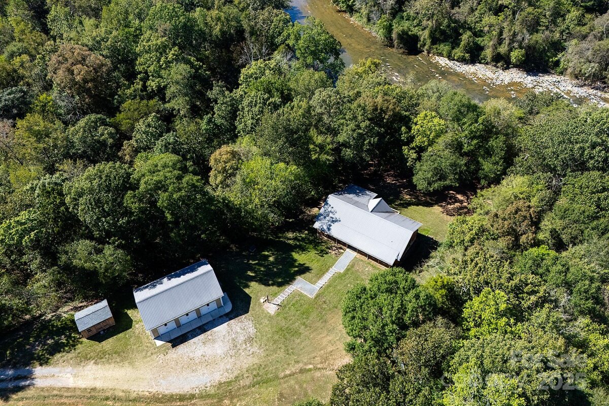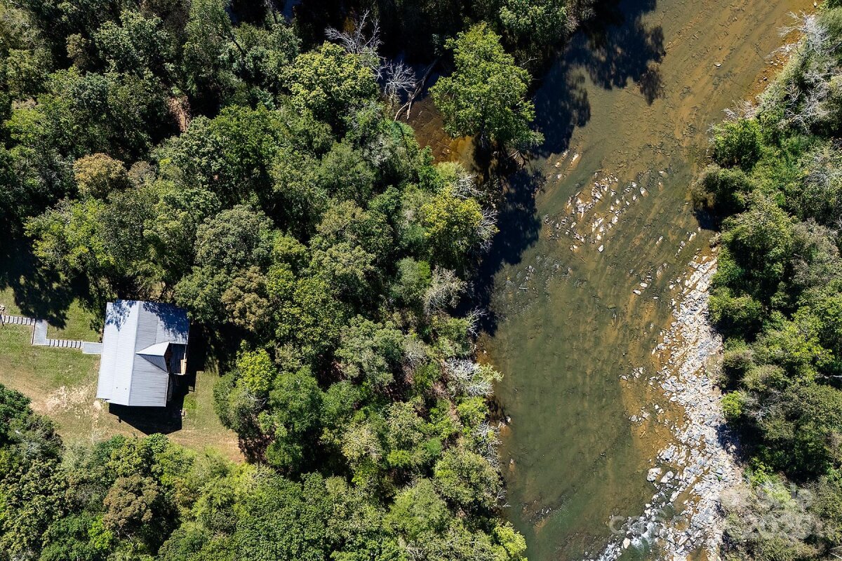 A truly unique property on the Rocky River that must be seen in person to appreciate! This extraordinary 10-acre property is nestled along a wide portion of the scenic Rocky River and is a haven for any outdoor enthusiast. With the sound of rapids and rushing water year-round, this property offers an opportunity to live surrounded by nature just outside Charlotte. This peaceful waterfront property has direct access to both Crooked Creek and Rocky River for bass fishing, kayaking and more, and the property’s wooded landscape also provides excellent hunting opportunities. The three-bedroom custom split-bedroom home has been lovingly cared for and was fully sandblasted and refinished - a $34k, five-coat process - in late 2024, and features a lifetime metal roof (2012). Enjoy soaring ceilings in the great room/dining room and abundant natural light throughout, along with river views from several rooms and the large back deck. Trane HVAC system installed in 2021, oversized septic tank with permit for a garbage disposal, and a whole-house water softener, PH balancer and R/O in the kitchen. Thoughtful convenience features include a whole-house vacuum and kick vacuums in the baseboard of the kitchen and bathrooms. With just a few cosmetic upgrades, it's ready to be a showstopper! Heated & cooled shop/garage: A large, fully equipped shop built in 2012 features heat/AC, three bays, a vehicle lift, power, and water. The garage has attic storage above two of the bays, and an extended-height third bay for car enthusiasts to fully utilize the lift. The exterior of the garage has dedicated 30/50 amp service, plus there is a separate RV pad just up the driveway already equipped with water and 30-amp service. There are two other outbuildings - one for additional storage with power, and a white hobby shed that is heated/cooled and with power and water. Too many features and upgrades on the property to list. The other side of Rocky River is conservancy land and will not be built on, preserving the gorgeous view. When/if the river swells, the water goes to that low-lying side as this property sits up much higher. This is a rare property to come on the market!