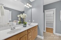 Discover a perfect blend of elegance and everyday luxury in this beautiful home in the coveted Quellin community. The main-level primary suite serves as a private retreat featuring a soaking tub and walk-in shower. A bright, refined layout offers a two-story great room, formal dining, dedicated office, and a beautifully appointed kitchen with quartz countertops, Calcutta marble backsplash, and stainless steel appliances. Upstairs features fresh new carpet, three generously sized bedrooms—including a Jack-and-Jill bath—and a versatile bonus/flex room ideal for media, fitness, or play. This home also offers impressive storage throughout, including multiple attic access points that provide exceptional space for organization and seasonal items. This home is situated on a level lot with a cozy deck that invites relaxed outdoor living. Community amenities include a pool, pickleball courts, and basketball. Convenient to top-rated Union County schools, shopping, dining, and charming Downtown Waxhaw.