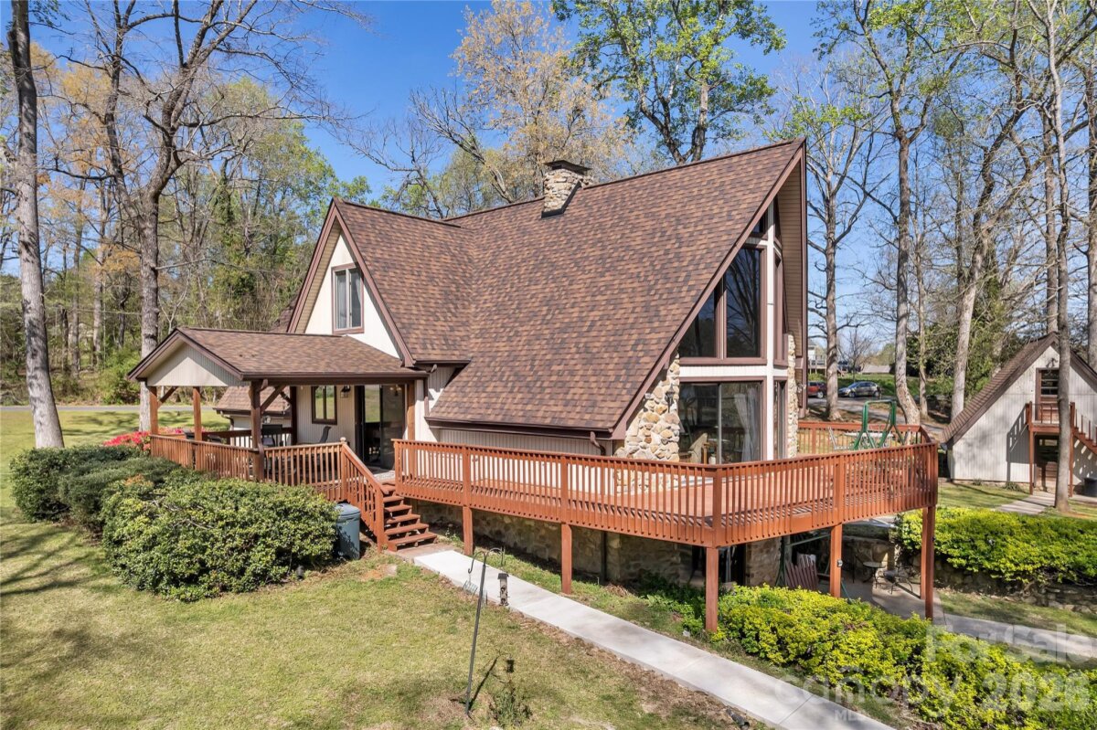 MOSS LAKE WATERFRONT Built in 1980 this home is still owned by the family that built it. The lot is just shy of one acre, with approximately 220 feet of waterfront. Currently the water is about 3 ft deep at the concrete pier and is typically 5-7 feet deep towards the middle of the cove. The great news is that there is NO homeowner’s association, so no monthly HOA dues or known restrictions. It is a 1 1/2 story basement home with 3 bedrooms, 3 full baths and total heated living area just over 3,300 sq. ft. You’ll enjoy the 2-car detached garage with a large 2nd floor storage room and newly installed sidewalks that give you easy access to the home from the roundabout at the end of the driveway. The main level includes the primary bedroom with attached bath, kitchen, dining room and a spacious living room that boasts cathedral ceilings, a 2-story, stone fireplace and spectacular 2-story windows w/sliding glass doors that access the wraparound deck. Additional features include: a second story with 2 additional bedrooms, a finished basement with a second kitchen, 2 rooms that have been utilized as bedrooms, and a family room with a fireplace. Two separate HVAC systems and a Tri-fuel WEN generator. Outside you can enjoy lake living at its best. From the large wraparound deck, patio off the basement, and lake views. BUYER AGENTS ARE WELCOME!