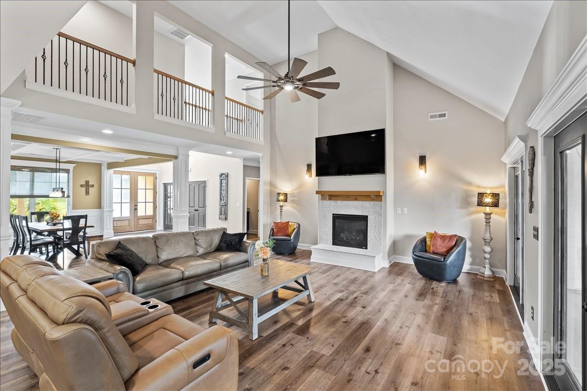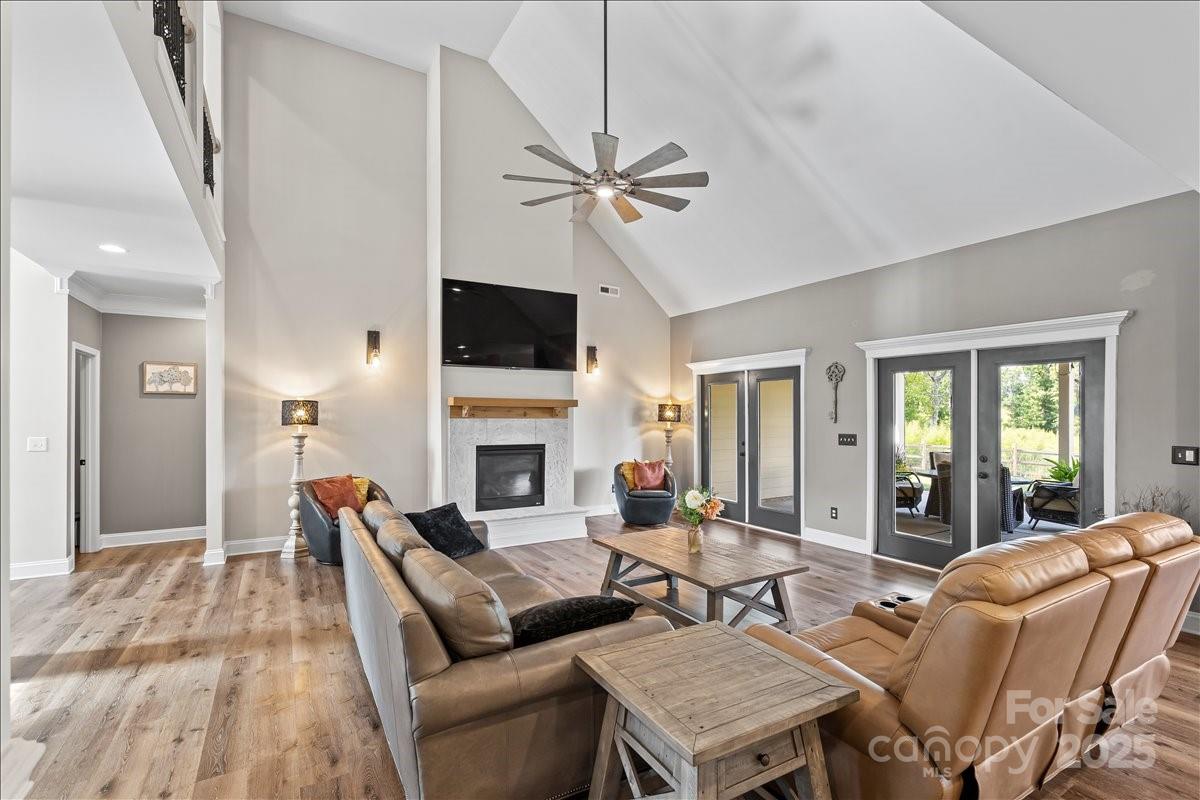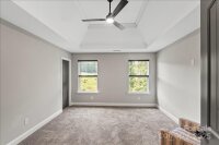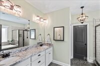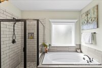 This rare beauty of a home is a MUST see!! An original JR Home construction, but with all the custom upgrades! It sits on a large, private lot of over three acres, with a fence for your furry friends. The home boast a large, open floor plan with tons of natural light and beautiful BRONZE windows. Cozy front porch to begin your morning with a coffee! Expansive luxury vinyl plank throughout. High vaulted ceilings. Upgraded lighting throughout the home and upgraded cabinetry throughout and high end countertops with beautiful antimicrobial granite sink. as well! Primary bedroom is on the main level, with THREE bedroom suites upstairs! All bedrooms are vaulted, and each has its own private bath. Sitting room/office on the main level, as well. The primary bedroom even has a luxurious sitting room or reading room. Immaculate, extra large covered back patio and garden around the home. Hot tub will remain! Tesla Charging Station! Additional Outdoor Electrical Panel and plumbed for Mud Sink in the laundry room. Within minutes to water front and boat access. Driveway large enough to hold a boat.