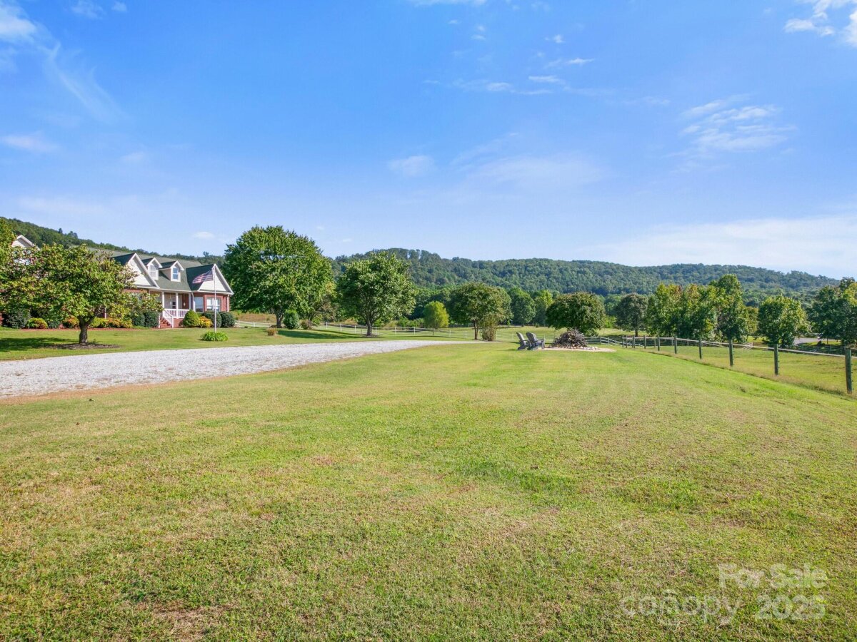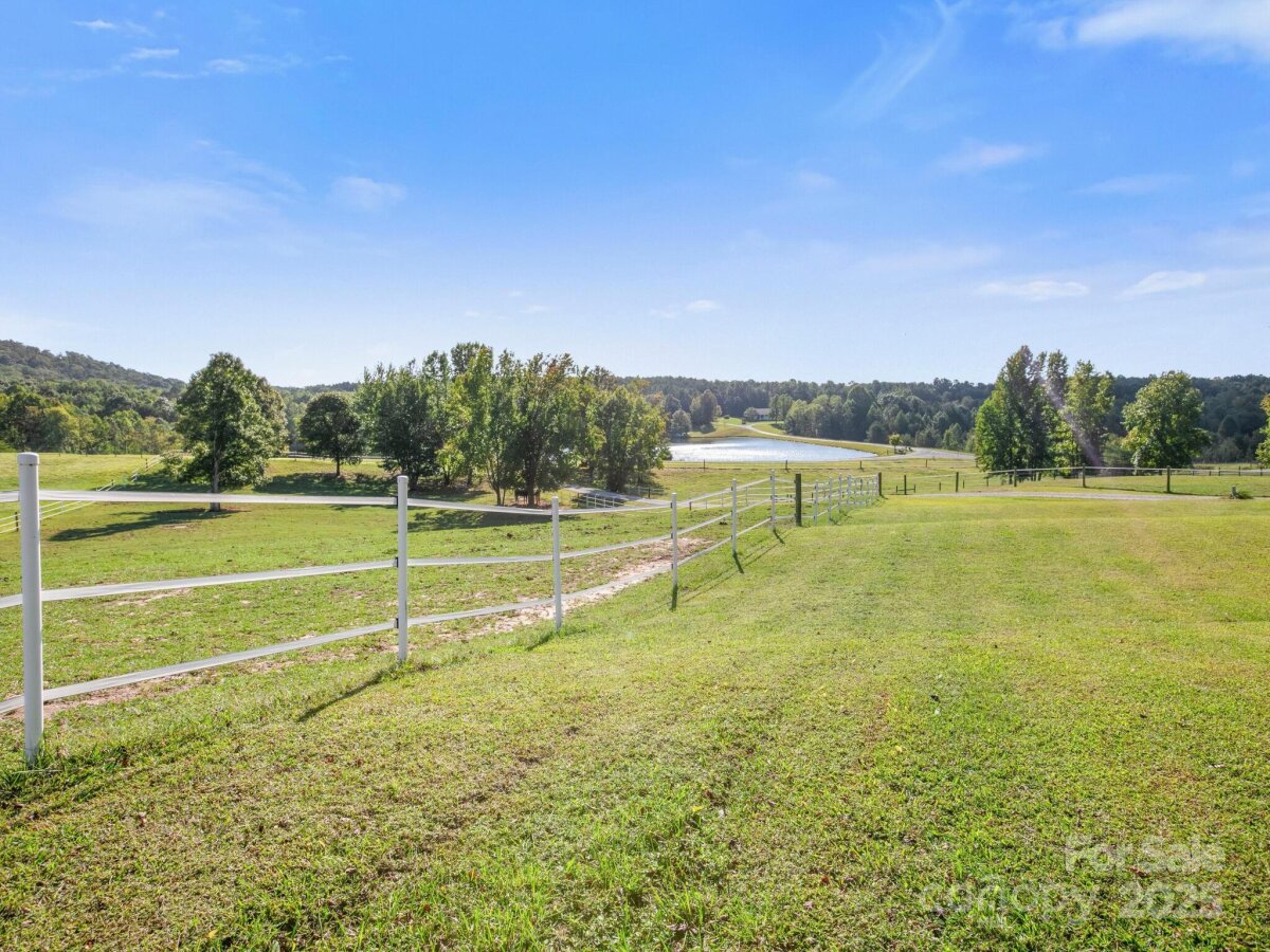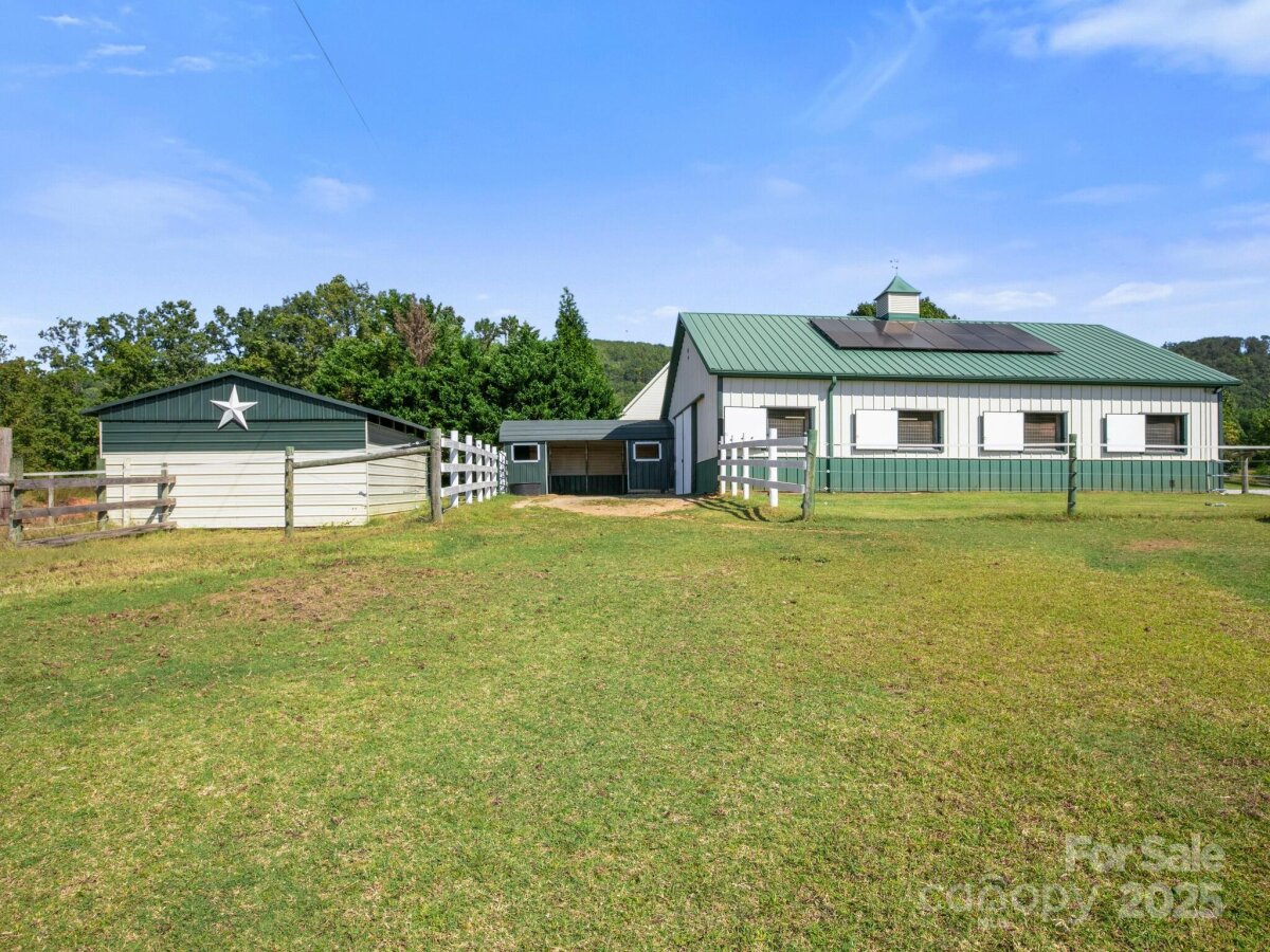 Picturesque and peaceful 12+ acre horse farm, all in pasture, featuring 3 bdrm/3 bath main house, guest cottage, high quality Morton barn, multiple run-in sheds and outbuildings. Set in a private equestrian community with a shared lake that provides a stunning water view for this property. Imagine living in a place where your neighbors share your love of horses, nature and privacy. The house, cottage, barn and property have all been meticulously maintained by the owner with attention to detail. Barn features a tack room lounge, feed room, wash stall w/hot&cold water, storage room and 5 stalls plus covered area for equipment. Separate hay barn; 3 run-in sheds, round pen and storage building. The community lake is stocked with fish and offers a dock with row boats for residents to use. There's also a community green area adjacent to the lake and a community riding ring. This farm has so much to offer: a fire pit that overlooks the rolling pastures and the lake, a large fenced dog yard, multiple fenced pastures with mature trees for shade, gated driveway. The cottage with its high ceilings and open floor plan is ready to welcome your guests or tenants. Both the house and cottage offer rocking chair front porches to enjoy the views. Quality finishes in both houses - hardwood floors, tile floors and granite counters in kitchens and baths. Beautifully landscaped. There are 2 wells, 2 septic systems, and solar panels on the barn which give the owner energy credits from Duke. Enjoy the view of nearby mountains without the challenging roads! This property is easy to get to, all main roads, NO steep hills or sharp curves. Only 25 minutes to Tryon International Equestrian Center. Don't miss your chance to live in an equestrian paradise.