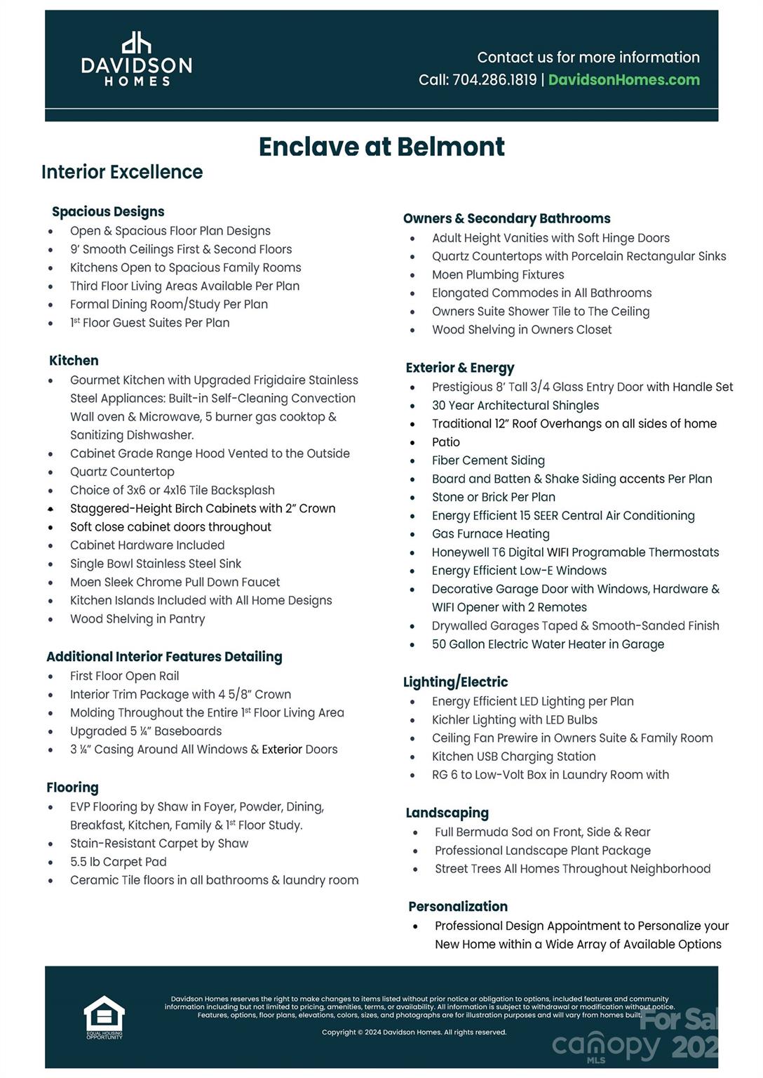The Enclave at Belmont is now open! Exclusively offering only 36 new homes ranging from 2500-4200 square feet (priced $500s-$700s). AMAZING LOCATION within easy walking distance of Belmont Middle and Southpoint High schools, plus historic downtown Belmont's restaurants, parks and events. Nestled between the new Del Webb Riverside 55+ community on the South Fork River just blocks away & Lake Wylie on the other side of the Belmont Peninsula, the Enclave is the only new neighborhood inside Belmont's City Limits offering newly built 2 & 3 story homes on private homesites. Very easy access to Charlotte - only 10 minutes to Charlotte's outer I-485 beltway & just a 25-minute commute straight into uptown via I-85 or Wilkinson Blvd. This wonderful quick move in "Hickory" two-story home design has 5br/4baths and is the largest of the first three homes, all now available for December move-in!