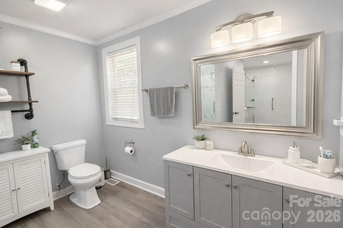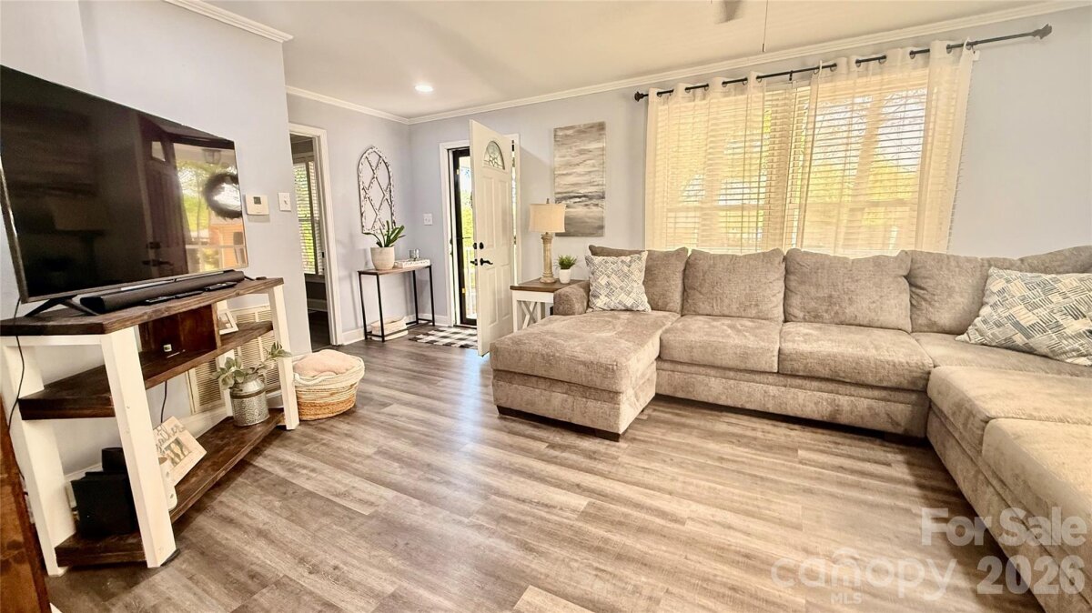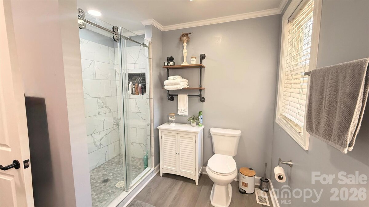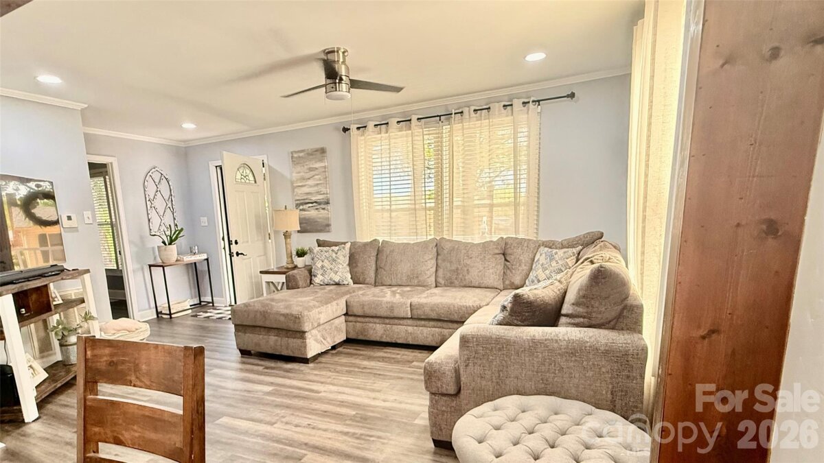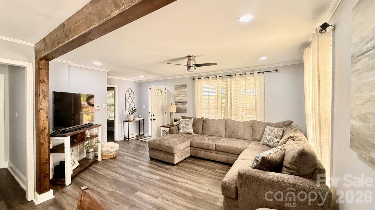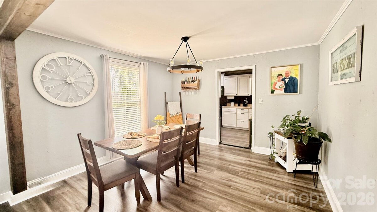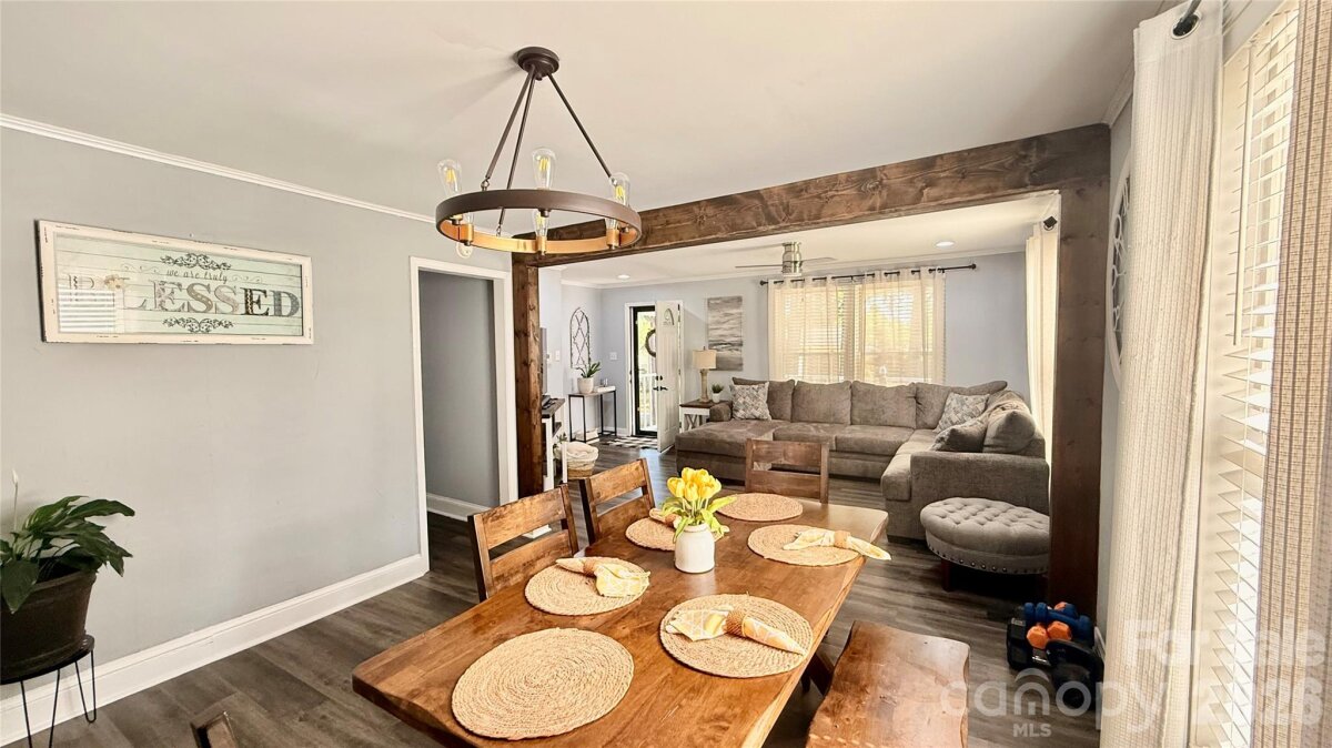 Tucked away in town, this cozy 2 bedroom and 2 bath home is nicely updated. A bright interior with modern updates throughout. Home offers 1215 square feet with an open floorplan from living room to dining room. Kitchen with lots of cabinets and breakfast area. Primary Bedroom with walk-in closet, private bath with tile shower and laundry room with storage. Outside there is a welcoming covered front porch and a patio area out back to enjoy your privacy. 2 car carport and storage building. Large floored attic space for storage. Convenient location. $258,000
