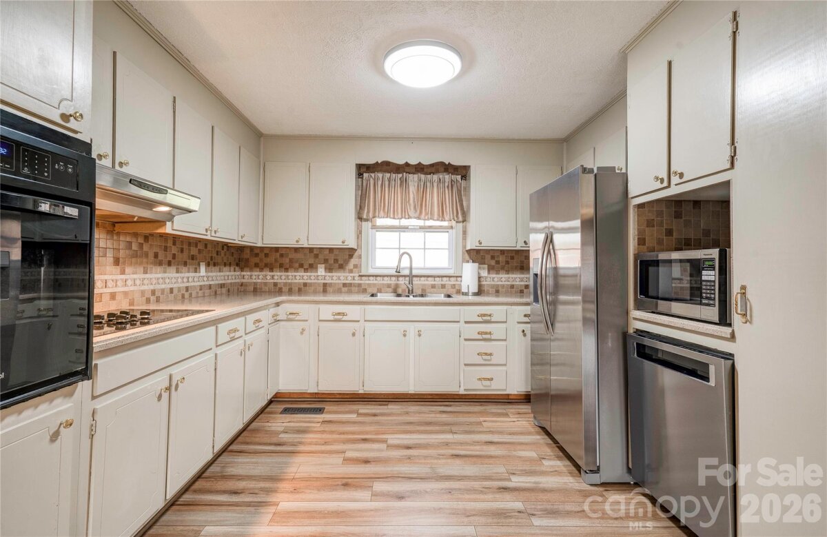 This 3-bedroom, 2-bath brick and vinyl home offers space, functionality, and peace of mind with a newer roof and vinyl replacement windows. Inside, you’ll find a comfortable living room plus a large bonus/family room, perfect for entertaining, a playroom, home office, or additional living space. The kitchen comes equipped with an electric cooktop, wall oven, dishwasher, refrigerator, and microwave—all remaining with the home. The spacious laundry room provides room for two sets of washers and dryers, offering incredible flexibility and convenience. Situated on a generous .416-acre lot, the property features abundant concrete parking and a storage building for extra storage or workshop needs. With plenty of indoor and outdoor space, this home is ready for its next owner!