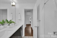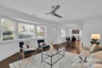 Fully updated home in a prime Charlotte infill location offering style, functionality, and abundant natural light throughout! This move-in ready property features site-finished hardwood floors, fresh interior and exterior paint, updated lighting, and replacement double-pane windows with 2" blinds, creating a bright and inviting atmosphere in every room. The updated kitchen is designed for both everyday living and entertaining, complete with quartz countertops, a glass tile backsplash, and great flow into the main living areas. The living room showcases a cozy wood-burning fireplace with crown molding and is filled with natural light from numerous windows. All bedrooms and the living area include ceiling fans for added comfort. The spacious primary suite offers a large custom closet and an updated en-suite bath featuring a tiled shower with frameless glass and dual vanities. The secondary bathroom is also updated with dual vanities and tub with tile surround, providing convenience for guests or additional occupants. A versatile third bedroom/bonus room features vaulted ceilings and is ideal for a home office, flex space, or guest room (no closet). Situated on a large wooded lot, this home offers privacy while still being close to everything Charlotte has to offer. Refrigerator, washer, and dryer all convey, making this a true turnkey opportunity. Conveniently located near Plaza Midwood, NoDa, and Uptown, with easy access to dining, shopping, parks, and major roadways—this is Charlotte living at its best!