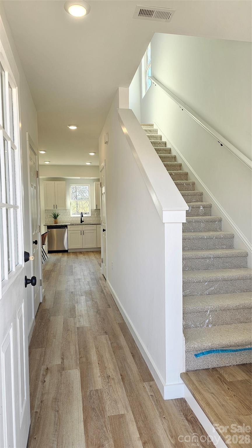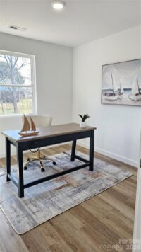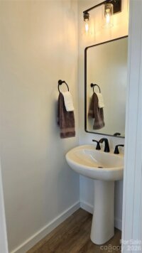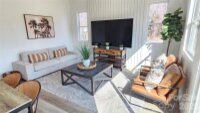 Charming new construction two-story home on a dead-end street featuring 3 bedrooms, 2.5 baths, a single-car garage, and a long driveway on an oversized lot—offering peaceful, country-style living within the city. Property is serviced by city water with a private septic system. The main level features an open-concept kitchen, dining, and great room with luxury vinyl plank flooring throughout the main living areas. Kitchen and baths include granite countertops, and the kitchen comes equipped with a stove, dishwasher, refrigerator, and over the range microwave. A sliding glass door leads to a raised deck, ideal for entertaining. Ample storage throughout. Upstairs, the primary suite includes an ensuite bath with dual sinks and a walk-in shower. A second-floor laundry area adds convenience. Two additional bedrooms and a full bath complete the upper level. The oversized lot offers added privacy and outdoor space, while the long driveway provides ample parking. Conveniently located near Hwy 70, Springs Rd, and I-40, with easy access to downtown Hickory, shopping, dining, and schools. Interior photos are for illustrative purposes only of same model and may include upgrades or features not included in the subject property. Builder specifications and selections may vary.