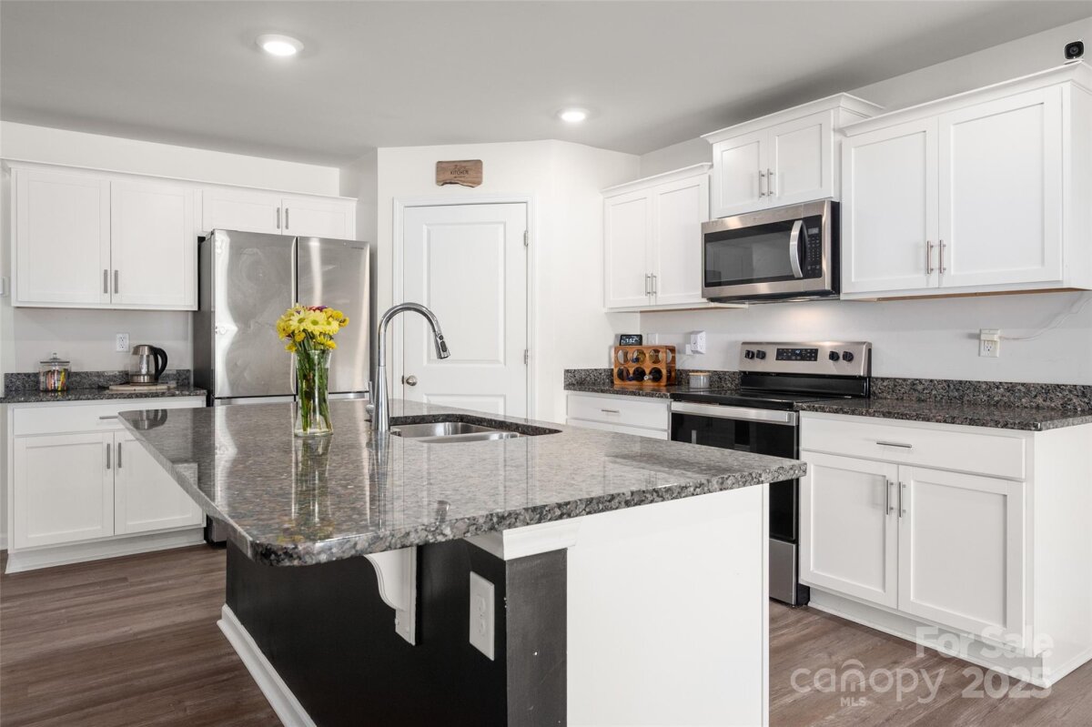 4.75% ASSUMABLE LOAN for qualified buyers. Buyers must meet FHA requirements plus credit requirements and must go through the complete refinance process. Welcome to this stunning home filled with custom upgrades and thoughtful design. Talk about a Showstopper. The sleek electric fireplace with built-in storage creates a modern focal point, while the custom drop zone and pantry add both style and function. A charming barn door leads to the private office, and the exterior stone façade adds timeless curb appeal. Inside, upgraded LVP floors flow throughout the ideal floorplan, which includes a convenient main-level bedroom and full bath. The oversized primary suite provides a luxurious retreat upstairs. Step outside to a fully fenced, mostly flat backyard featuring a gorgeous paver patio, perfect for entertaining. Backing up to a walking trail and wooded area, the setting offers both privacy and connection to nature. Additional highlights include a bold accent wall on the kitchen island and versatile storage solutions throughout. This home truly blends modern elegance with everyday comfort — a rare find you won’t want to miss! The sellers are offering a $3K paint allowance with an acceptable offer.
