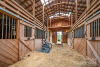 Welcome to your private retreat in the heart of Western North Carolina! Set on 31.32 acres with long-range mountain views, this property combines comfort, privacy, and equestrian amenities. The site-built 36x36 horse barn features three 11x12 stalls, plus a 24x36 mare-and-foal stall that can be partitioned to create up to five stalls. A tack & feed room, hay area, a storage loft, and four separate pastures provide everything you need for horses or other livestock. A beautifully flowing creek winds through the land, adding to the serene setting. Step inside to discover a bright, open floor plan with expansive windows that frame breathtaking views of sunsets and sunrises. The 3-bedroom, 2 ½-bath home features a welcoming layout, with a great room anchored by a cozy fireplace, open to the dining area, and flowing directly onto a spacious screened-in porch—perfect for relaxation. The large kitchen, complete with a breakfast nook, provides ample space for gathering. Upstairs, a family room with vaulted ceilings creates a bright, open space. The primary ensuite is a true getaway with a massive closet, garden tub, and shower. An oversized 3-car garage completes the home, blending function with comfort. The garage has plumbing in place, ready for an additional primary suite if desired. This property offers privacy, the beauty of the foothills, and all the features for those seeking both a home and an equestrian lifestyle. Conveniently located near Charlotte, Asheville, and Hickory, yet tucked away for ultimate privacy. Only 20 miles from Tryon Equestrian Center. This horse farm is a must-see!