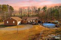 This is the property you’ve been waiting for! Situated on 5.89 private acres in the highly sought-after Jesse Carson school district, this stunning all-brick home blends quality craftsmanship with exceptional indoor and outdoor living. Inside, you’ll find an open floor plan with a cozy fireplace and Brazilian hardwood flooring throughout, creating a warm and elegant flow through the super-sized living, kitchen, and dining areas—perfect for entertaining. The kitchen features new sink, quartz countertops and tile backsplash. Appliances that convey, include the refrigerator, Electrolux slide-in oven, and one-year-old dishwasher. The primary suite offers a peaceful retreat with a huge walk-in closet and a beautifully remodeled bath featuring a tiled walk-in shower, soaking tub, and double vanity. The home includes 2 bedrooms and 2 full baths, thoughtfully designed for comfort and functionality. Step outside to enjoy a spacious rear deck with an awning for shade, overlooking a private outdoor oasis complete with an above-ground pool with Trex decking, hot tub, multiple bar areas, and a dedicated play space—ideal for both relaxation and entertaining. Additional features include a 3-bay drive-through garage, two large storage barns, and a metal wired shop with water and a generator outlet. More recent updates include replacement windows and slider, solar driveway lights, encapsulated crawl space in 2023, and a septic system pumped and inspected in 2023. Conveniently located near Rockwell, Salisbury, and China Grove, this property offers the perfect blend of privacy, space, and accessibility. A rare find—schedule your showing today!