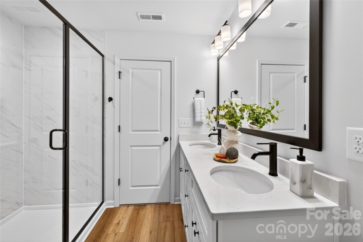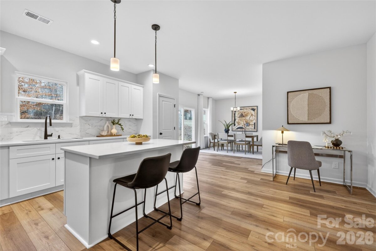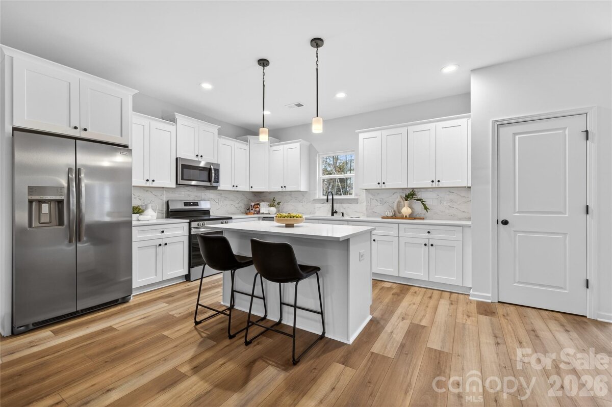 This beautifully crafted new-construction home offers modern living in a convenient north Charlotte location, surrounded by Mallard Creek Park and Tradition Golf Course. The thoughtfully designed open-concept layout seamlessly connects the kitchen, dining, and living areas—ideal for both everyday living and entertaining. The kitchen is equipped with quartz countertops, soft-close cabinetry, and a spacious island that anchors the main living space. The primary suite provides a comfortable retreat with generous closet space and a well-appointed bath, while additional bedrooms offer flexibility for guests, a home office, or future needs. Step outside to enjoy a flat, usable backyard—perfect for entertaining, play, or relaxing evenings. Enjoy close proximity to UNC Charlotte, the light rail, and major commuter routes—schedule your tour today!
