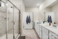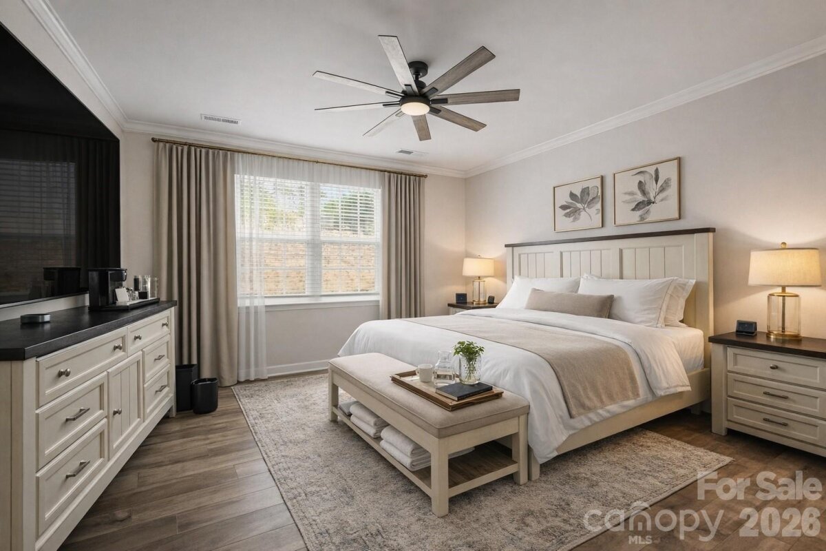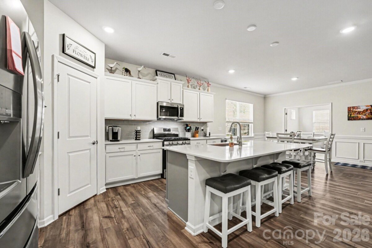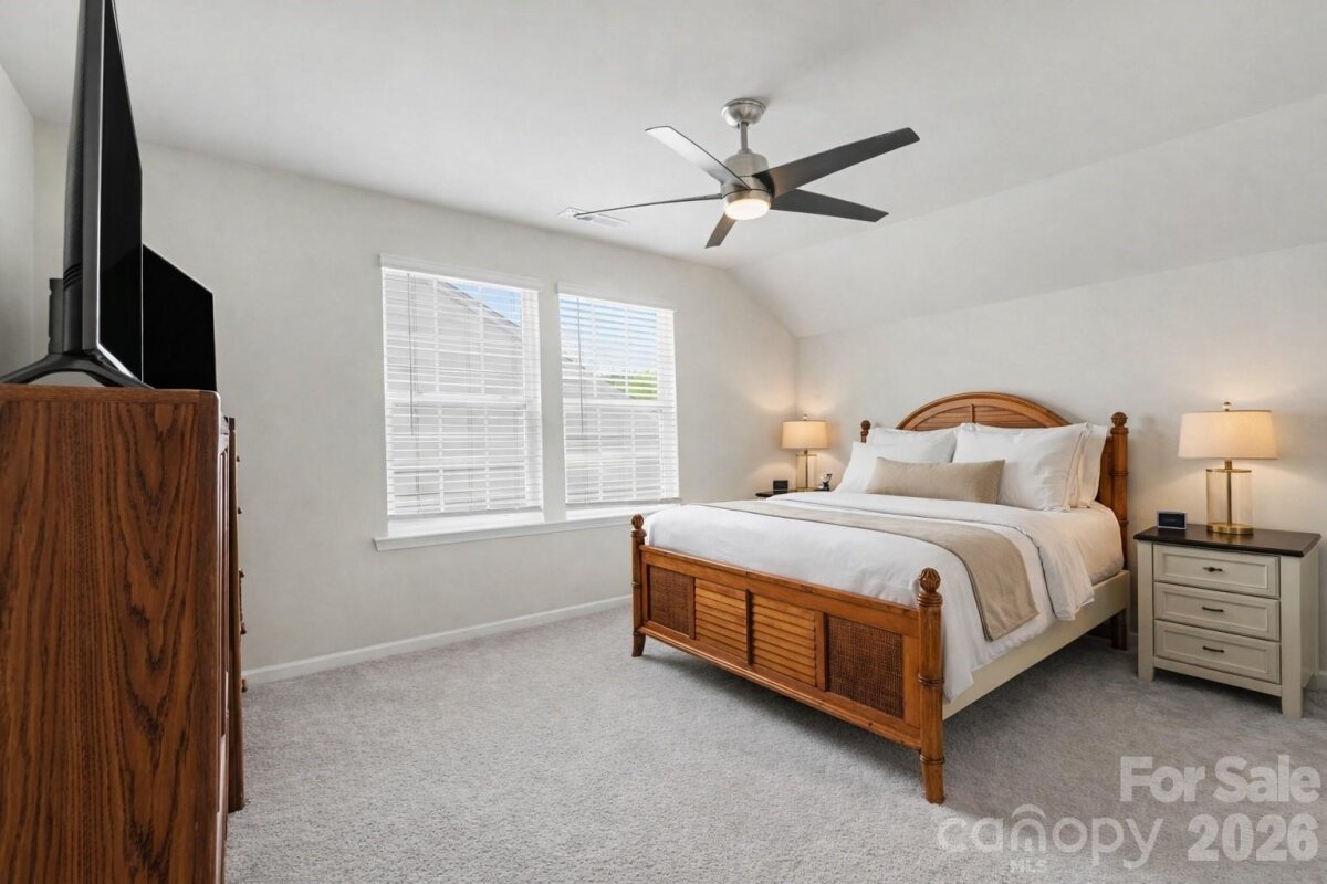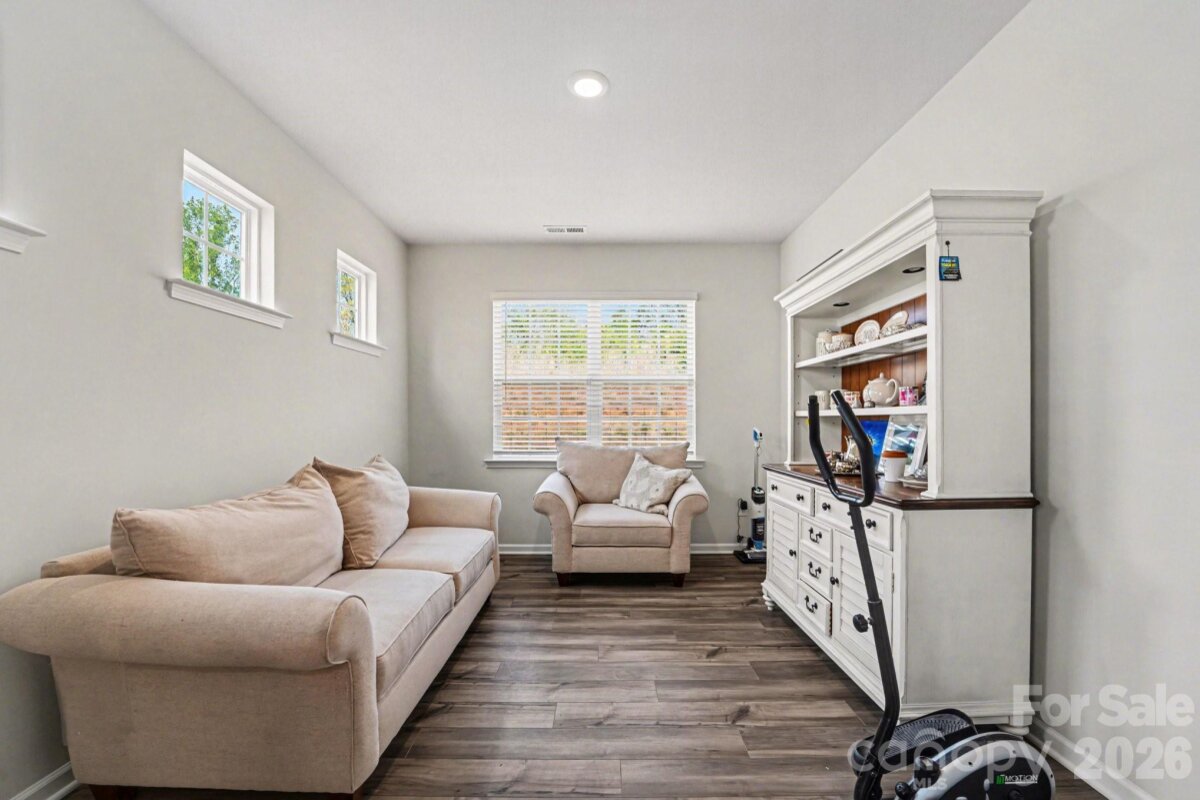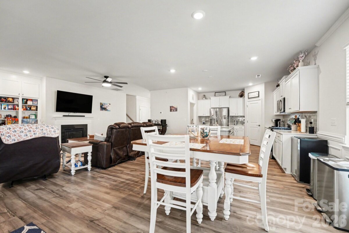Welcome to this like-new 3 bedroom, 3 bath home nestled in a cozy Statesville neighborhood just minutes from I-77 for easy commuting. Built in 2023, this home shows like brand new and offers a bright, open floorplan with spacious rooms designed for both comfort and entertaining. The main-level owner’s suite provides convenience and privacy, featuring a beautifully designed bath with tile and listello accents in the shower. The heart of the home is the large, thoughtfully designed kitchen—complete with abundant counter space, crown molding, backsplash, and seamless flow into the dining area, study, and inviting family room. Enjoy cozy evenings by the fireplace, adding warmth and ambiance to the space. Natural light pours throughout, creating a warm and inviting atmosphere. Upstairs, a spacious loft offers additional living flexibility along with a private bedroom and full en suite bath—perfect for guests or multi-generational living. Ample storage throughout, including large hall closets, adds everyday practicality. Step outside to your covered, screened-in outdoor living space—your own private oasis for relaxing, unwinding, or entertaining year-round. Located near Statesville Country Club with golf access and just minutes from charming downtown Statesville, where you’ll enjoy local shops, restaurants, entertainment, and community amenities including a town pool and park. The neighborhood itself features sidewalks, walking trails, picnic areas, a pavilion, pickleball courts, and even a community garden. Loaded with modern finishes and thoughtful upgrades, this home truly has all the bells and whistles—without the wait of new construction.