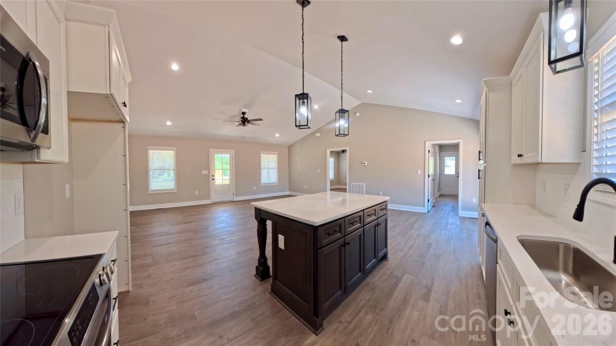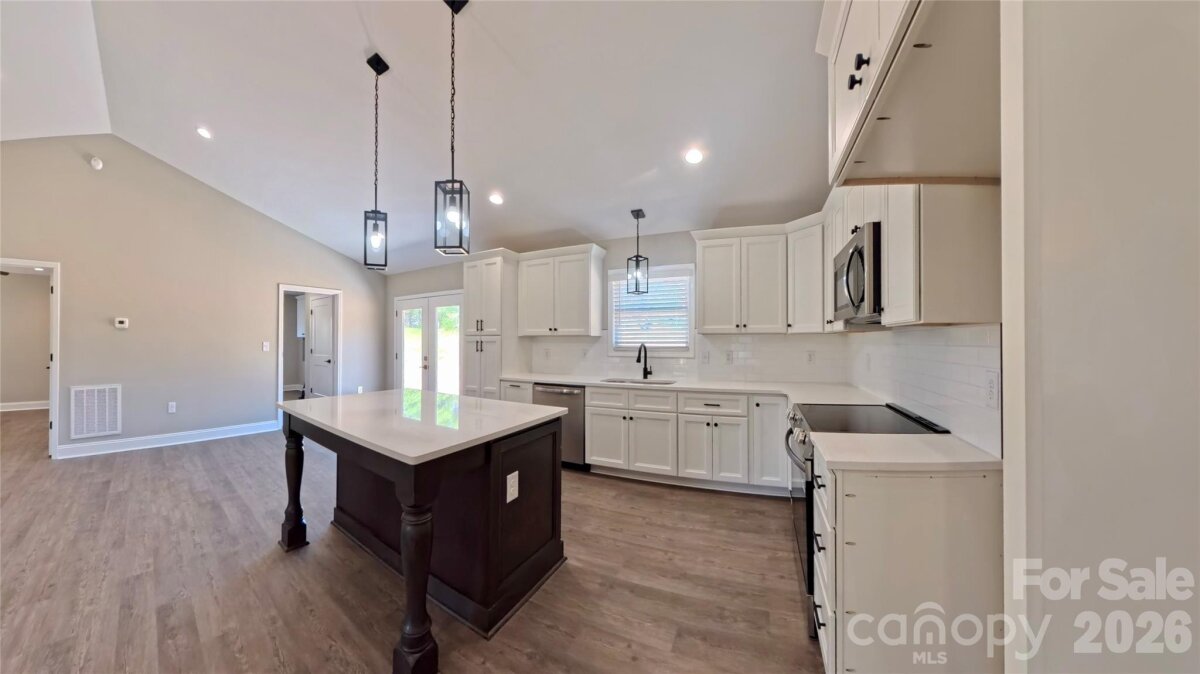 Welcome to your brand-new home on a spacious 1.42-acre lot. This thoughtfully designed 3-bedroom, 2-bathroom new construction blends modern style with everyday comfort. A 40’ x 6’ covered front porch invites you to enjoy quiet mornings, while the 10’ x 16’ concrete patio out back is perfect for cookouts and gatherings. Inside, the open-concept layout showcases vaulted ceilings in the living, dining, and kitchen areas, filling the home with natural light and creating a warm, welcoming atmosphere. Throughout the home, durable luxury vinyl plank flooring offers a stylish look with easy maintenance. The kitchen stands out with pure white cabinetry, a gray-stained custom kitchen island, quartz countertops, and a tile backsplash, creating a space that feels both timeless and functional. The guest bathroom includes a 48†vanity and tub, while the owner’s suite offers a private retreat with a double vanity, linen closet, beautifully tiled shower, and walk-in closet. With stylish finishes, a functional floor plan, and a peaceful setting, this new home is designed for modern living—all within 10 minutes of downtown Lincolnton, 30 minutes to Hickory, and under an hour to Charlotte Douglas International Airport.