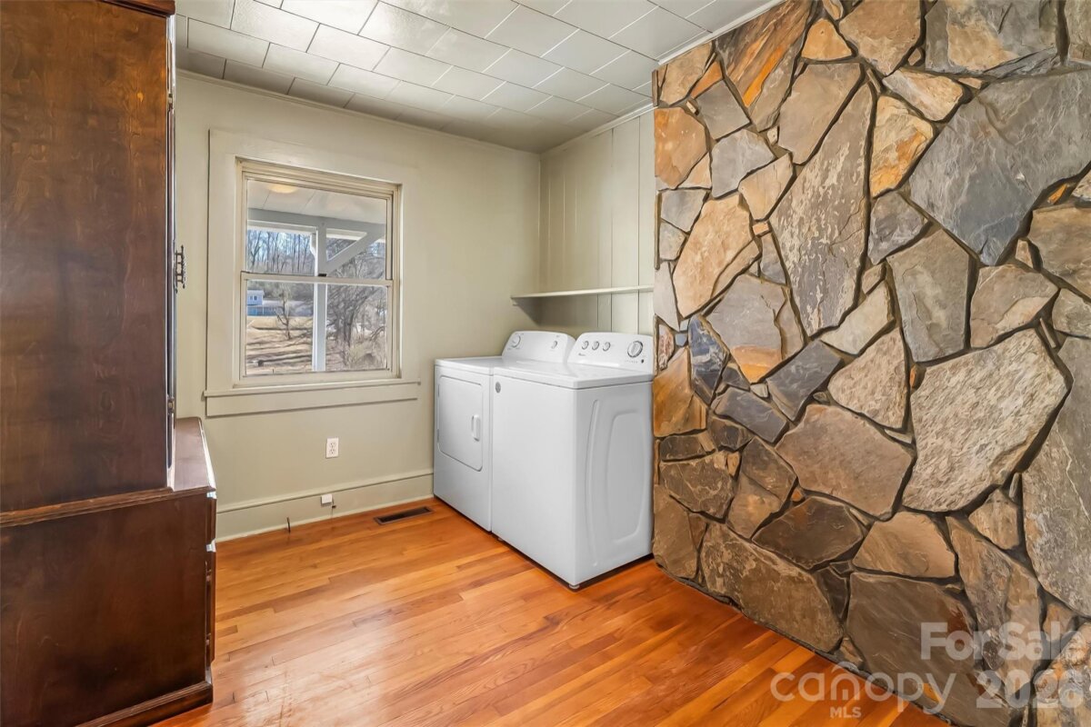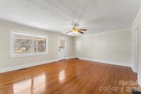 Charming ranch in the Pleasant Gardens community! Sip your morning coffee or relax in the evening on the covered front porch, then step inside to a warm and inviting living room featuring a stunning stone fireplace with built-ins, flowing seamlessly into the dining area with gleaming hardwood floors. The functional kitchen offers beautiful red oak cabinetry and plenty of space for meal prep. With 2 bedrooms plus a large family room that could serve as a third, this home offers flexibility. The screened, covered back porch offers a comfortable space to relax and enjoy the views. Step outside to the level, fully fenced backyard that is perfect for pets, gardening, or entertaining. Additional highlights include an unfinished basement ideal for extra storage or a workshop, a spacious carport, and a generous storage shed. Conveniently located approximately 30 minutes from Asheville and the Blue Ridge Mountains, this home combines comfort, charm, and accessibility.