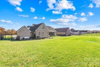This is the kind of home that makes you slow down, take a breath, and picture your life unfolding inside. From the welcoming covered front porch to the soaring two-story great room, every space was designed with comfort, function, and flexibility in mind. The light-filled living area features a color-changing electric fireplace that creates instant ambiance for quiet nights or lively gatherings. The kitchen is truly the heart of the home—abundant counter space, towering stacker cabinets, a stunning painted island with cabinets on both sides, and a farmhouse sink with filtered water make it as practical as it is beautiful. A generous walk-in pantry with custom shelving and a built-in planning desk keeps everything organized and within reach. The private owners’ retreat offers a spa-like escape with a soaking tub, separate walk-in shower, and an oversized closet that connects directly to the laundry room for everyday ease. The split-bedroom floor plan provides privacy, with two additional bedrooms and a full bath on the opposite wing. Upstairs, a massive bonus room with its own full bath gives you options—2nd primary suite, media room, playroom, or craft room. A main-level bedroom currently used as a library or office adds even more versatility. Enjoy evenings on the screened porch overlooking the fully fenced backyard, or relax on the covered front porch. With over 3,000 square feet, 3 bedrooms, 3.5 baths, and an impressive 877 square feet of garage space—including a spacious two-car garage plus a separate one-car bay with storage—this full-brick home offers room to live the way you want. Some photos are virtually staged, so you can imagine your own style. Peaceful setting. Thoughtful design. Space to grow or to downsize in style. Come see it in person—and decide if this is the one.