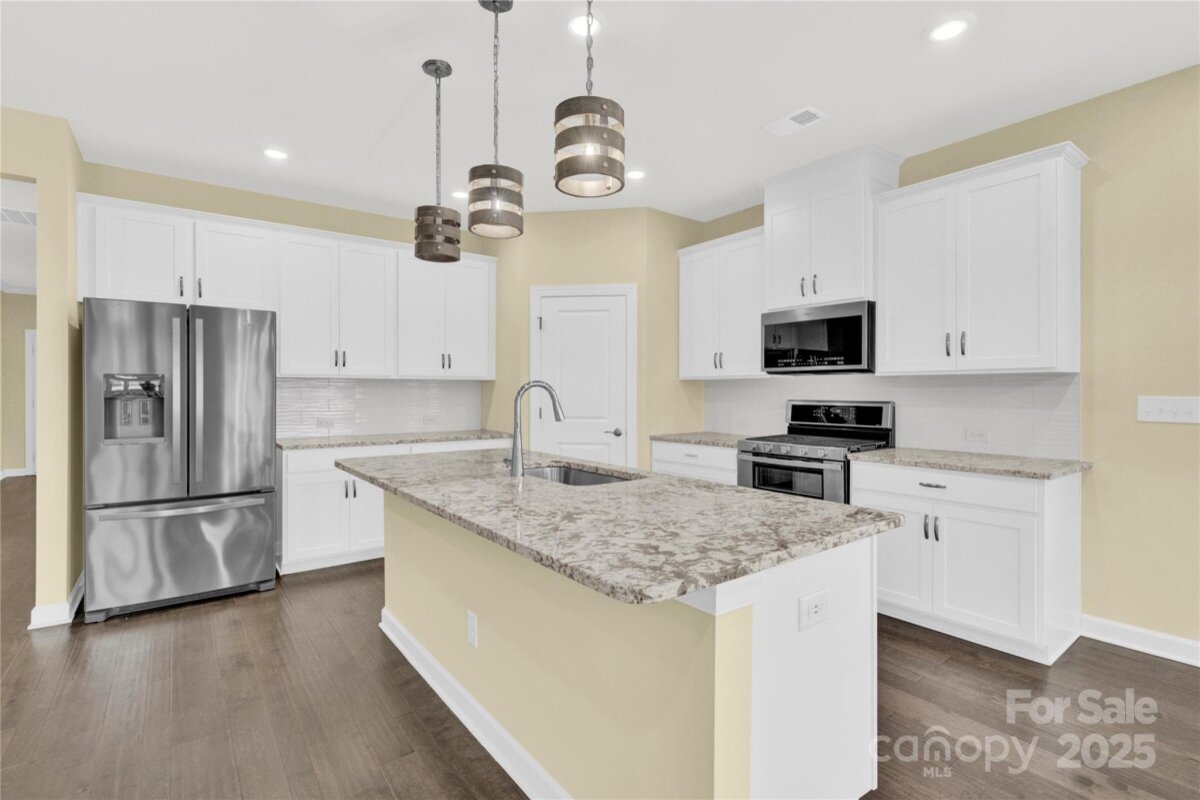 Welcome to this stunning, nearly new one-level ranch home where modern elegance, comfort, and efficiency come together effortlessly. Designed for luxurious yet low-maintenance living, this bright and open floor plan offers a neutral color palette, warm Oyster Oak luxury vinyl plank flooring, and versatile spaces—including a main-level bonus/flex room perfect for an office, playroom, or guest area. A convenient drop zone and inviting gas fireplace add both function and charm. entire house has updated light fixture and fan with remote control. At the heart of the home is a beautifully appointed gourmet kitchen featuring a spacious island, gas cooktop, stainless steel appliances, Tahoe Harbor painted cabinetry, and striking granite countertops. The open-concept family room flows seamlessly into a fully screened, covered patio—enhanced by a recently added extended concrete pad—creating an ideal space for year-round indoor/outdoor living. The expansive owner’s suite offers a serene retreat with a generous walk-in closet and spa-like finishes. Outdoors, a premium black aluminum fence frames the backyard, offering both style and privacy while leaving plenty of room to enjoy or further expand your outdoor living space. Located in a well-situated Charlotte community with easy access to highways, thoroughfares, shopping, and daily amenities. Neighborhood features include a clubhouse, pool, playground, walking areas, and regular social gatherings. HOA dues cover exterior maintenance and lawncare for truly effortless living.