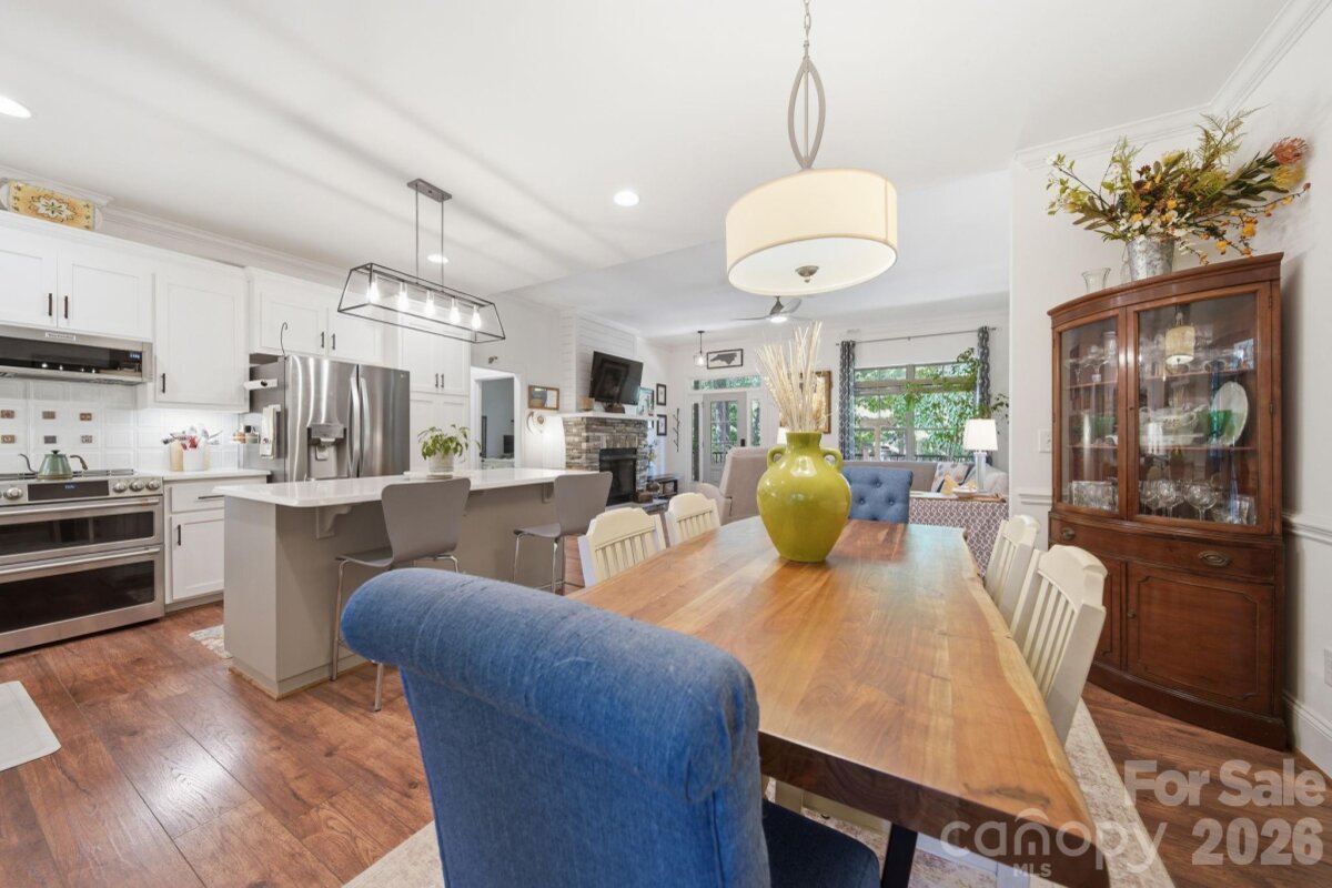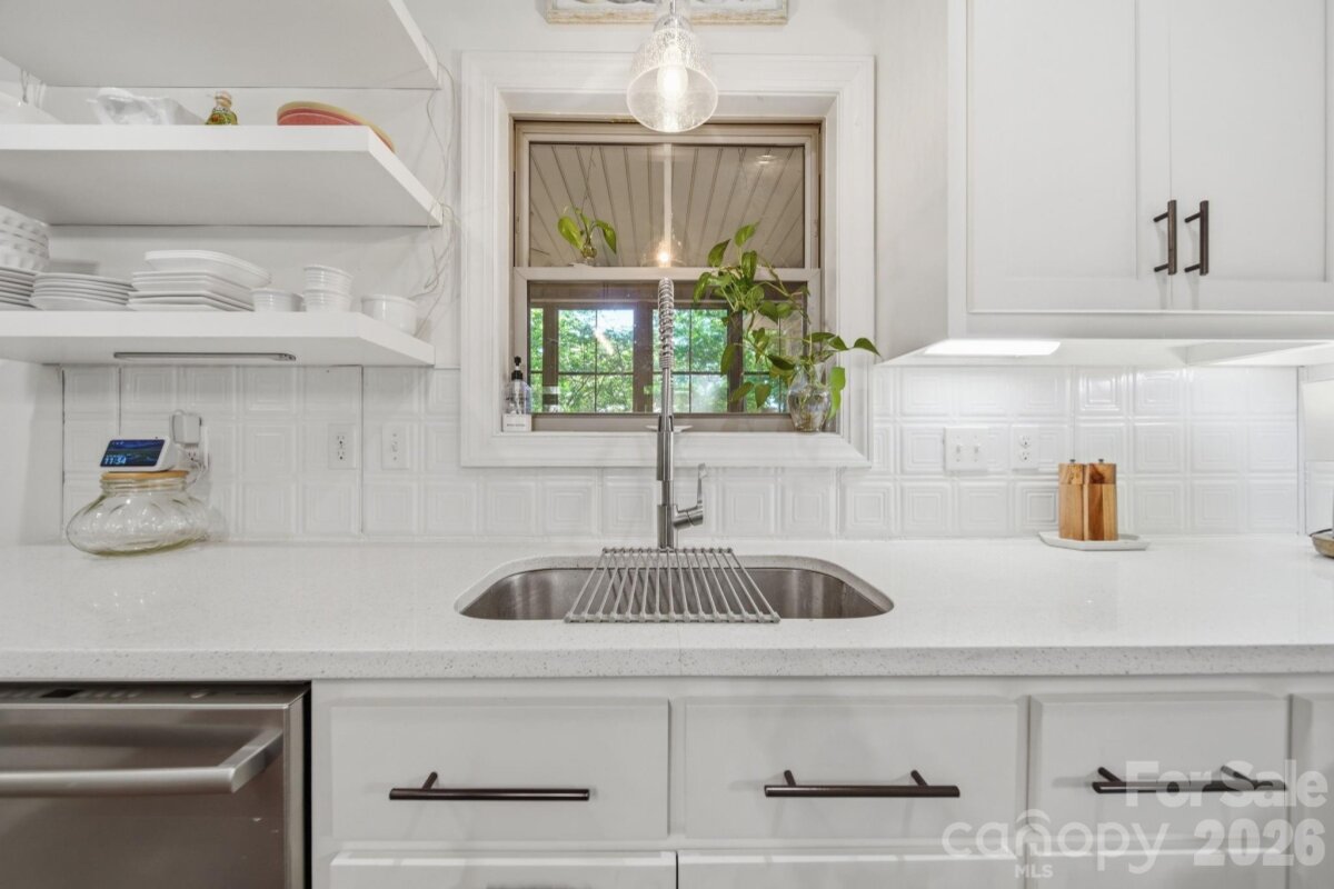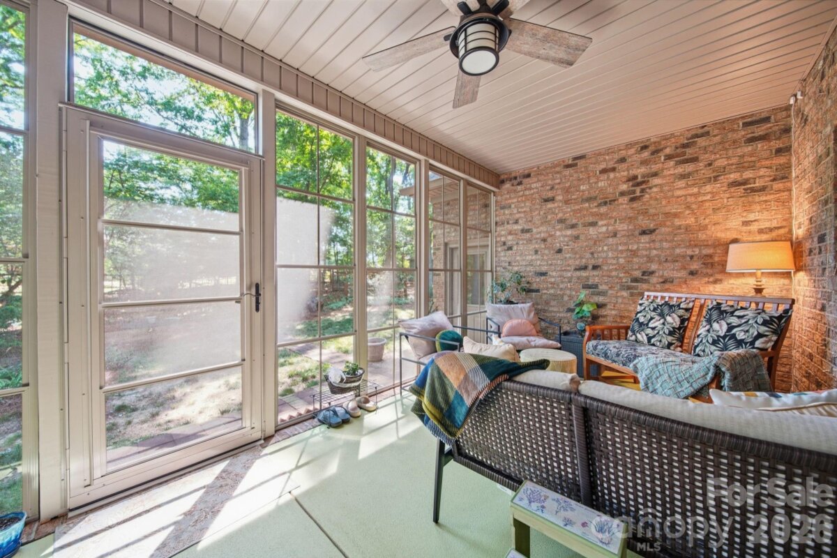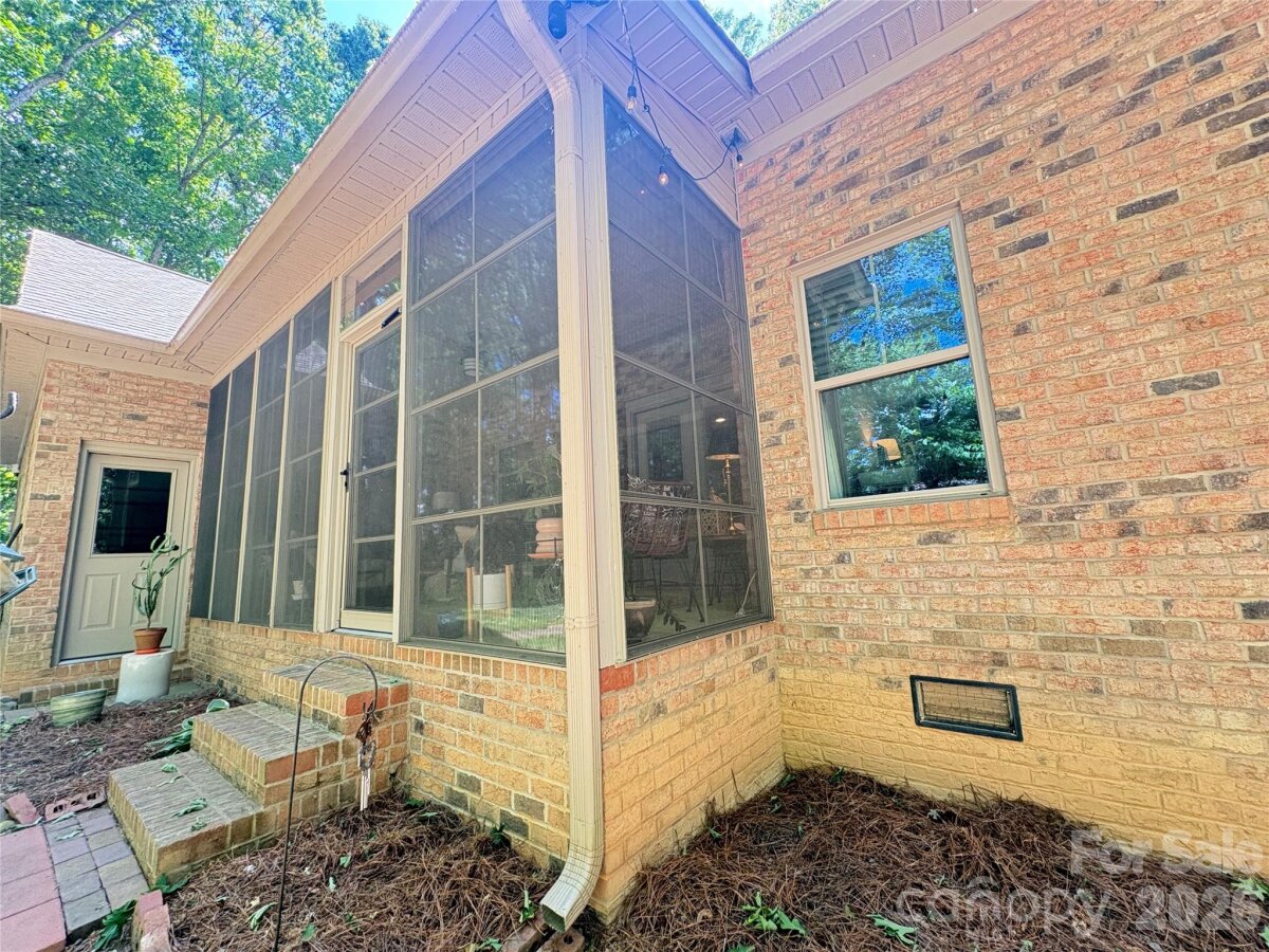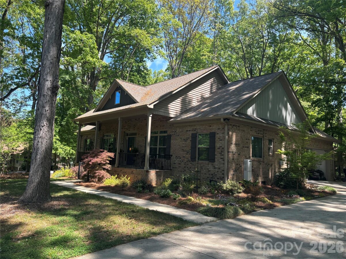Beautiful CUSTOM full brick ranch with oversized garage in highly sought after Oakdale Subdivision. Enjoy privacy and lush landscaping with abundant native plants, plus inviting outdoor living spaces including a covered front porch and a sunroom-style enclosed back porch. The double area fenced in backyard has charming string lights and pavers. Inside, you'll find a highly upgraded chef's kitchen featuring an induction cooktop, double oven , large island,quarts countertops, custom shelving, and upgraded cabinetry-perfect for everyday living and entertaining. Stylish lighting and beautiful flooring flow throughout the home. The cozy family area showcases a stone fireplace with gas logs, while the extra-large laundry/craft room offers exceptional flexibility. Cute Drop Zone as you come in the home from garage. Additional highlights include and on-demand tankless water heater, epoxy-coated garage flooring, glass shower doors, double vanities in both bathrooms with quartz countertops...Spacious attic for storage. Primary bath en suite includes separate shower and tub and Walk in closet. Garage has a sink. The home is wired with a media box, includes a generator hookup and has an adorable wired storage shed with a concrete floor. NO HOA and low Unionville taxes! Conveniently located near Hwy 74 BYPASS for an easy commute to Matthews and Charlotte...Great walking neighborhood! "low mow natural landscape"