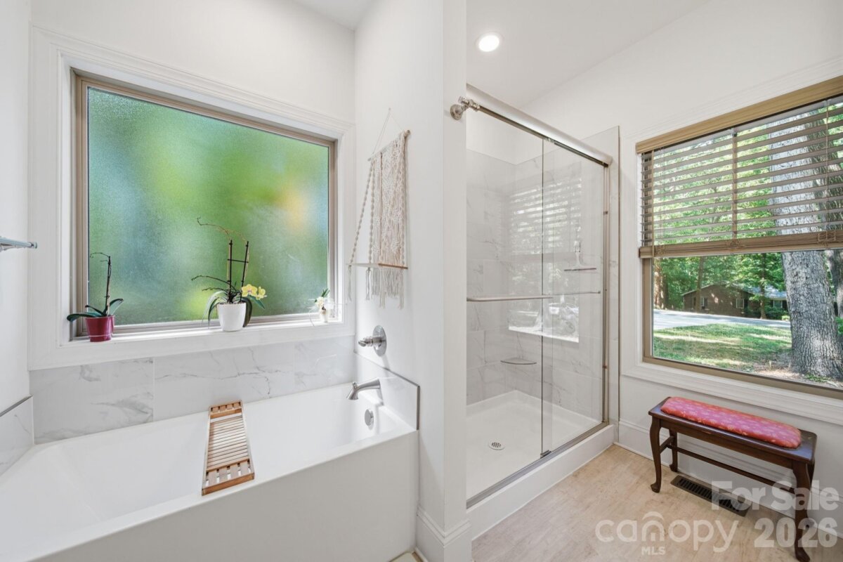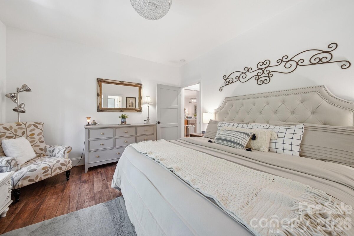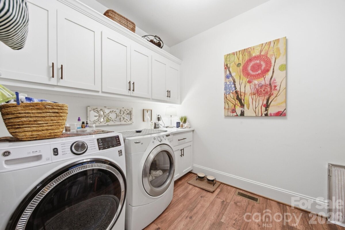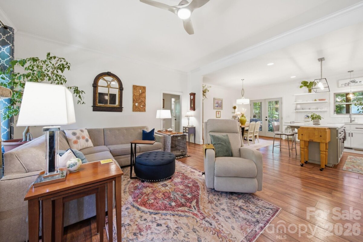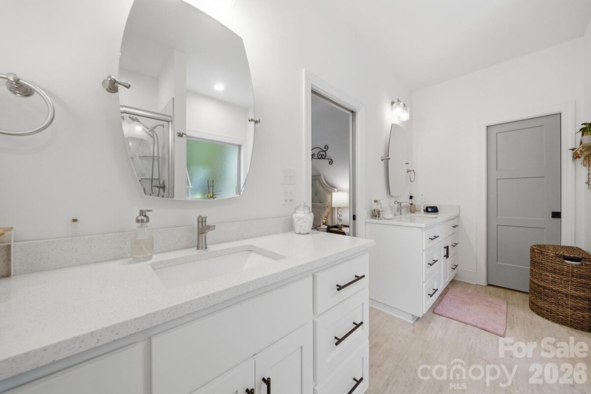 Beautiful CUSTOM full brick ranch with oversized garage in highly sought after Oakdale Subdivision. Enjoy privacy and lush landscaping with abundant native plants, plus inviting outdoor living spaces including a covered front porch and a sunroom-style enclosed back porch. The double area fenced in backyard has charming string lights and pavers. Inside, you'll find a highly upgraded chef's kitchen featuring an induction cooktop, double oven , large island,quarts countertops, custom shelving, and upgraded cabinetry-perfect for everyday living and entertaining. Stylish lighting and beautiful flooring flow throughout the home. The cozy family area showcases a stone fireplace with gas logs, while the extra-large laundry/craft room offers exceptional flexibility. Cute Drop Zone as you come in the home from garage. Additional highlights include and on-demand tankless water heater, epoxy-coated garage flooring, glass shower doors, double vanities in both bathrooms with quartz countertops...Spacious attic for storage. Primary bath en suite includes separate shower and tub and Walk in closet. Garage has a sink. The home is wired with a media box, includes a generator hookup and has an adorable wired storage shed with a concrete floor. NO HOA and low Unionville taxes! Conveniently located near Hwy 74 BYPASS for an easy commute to Matthews and Charlotte...Great walking neighborhood! "low mow natural landscape"