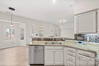 Located in the highly sought-after Southwoods community, this beautifully maintained 3-bed, 2-bath home is packed with desirable features. The exterior offers charming brick accents, a 2-car garage, a fully fenced backyard, and a screened-in deck perfect for relaxing or entertaining. Solar panels on the roof provide impressive savings on utility costs. Inside, an open floorplan centers around a spacious kitchen equipped with a home monitoring system, allowing you to prep meals while keeping an eye on everything happening around you. Two bedrooms sit just off the main living area, while the primary suite is privately positioned on the opposite side of the home. The suite features a vaulted ceiling, a separate soaking tub and shower, and a generous walk-in closet. Conveniently located near shopping, dining, and major highways, this home blends comfort, efficiency, and accessibility.